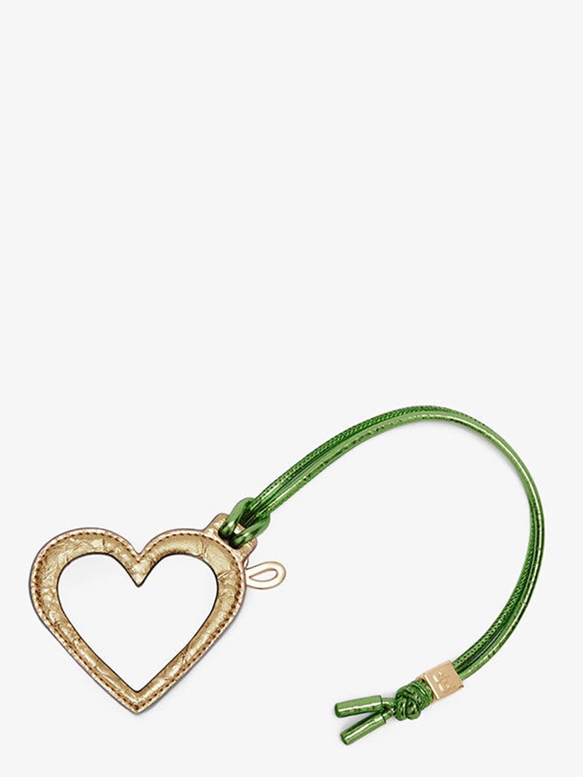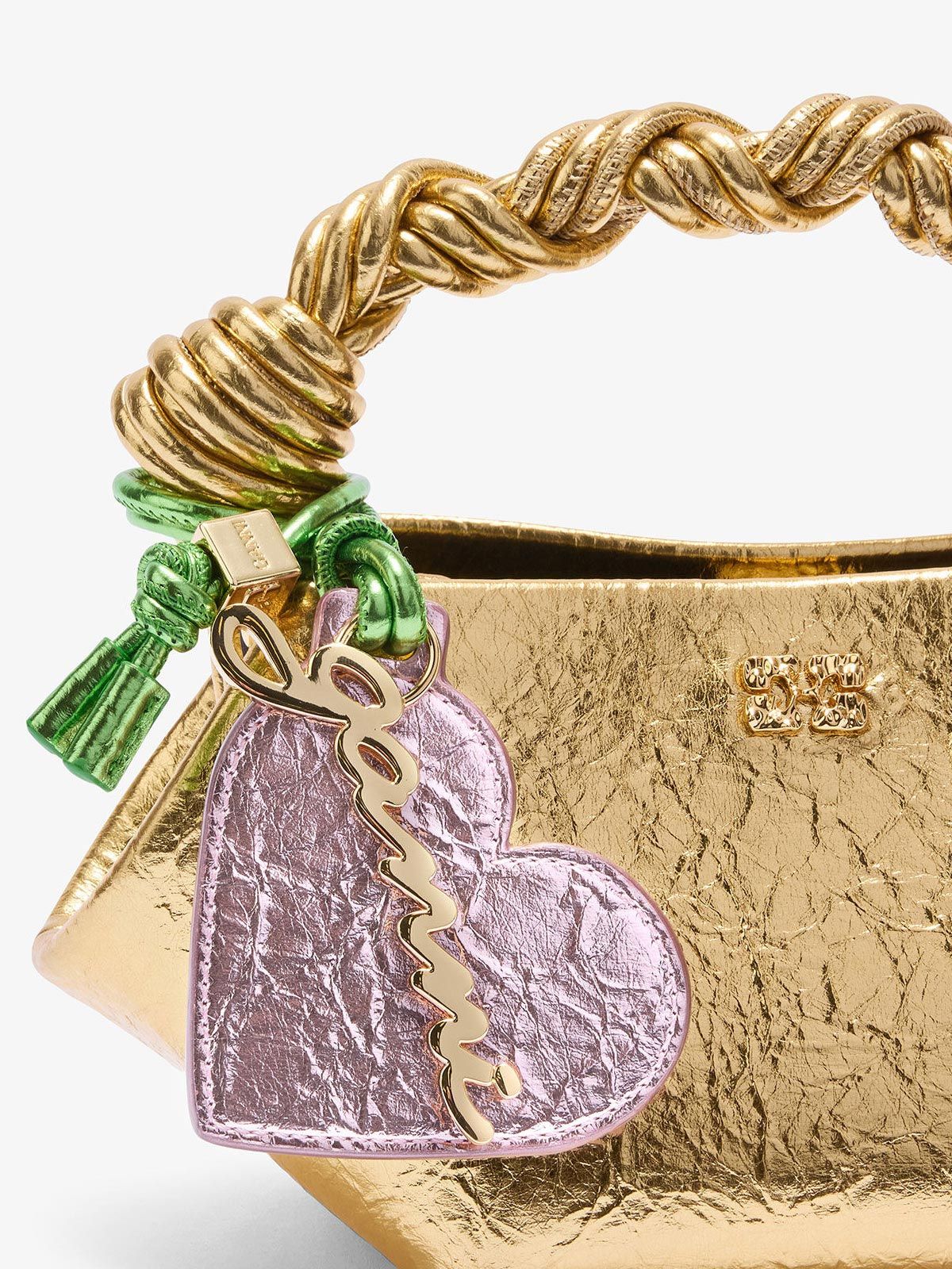 This GANNI Bicolour Portable Mirror combines functionality and distinctive charm, presented in a delightful heart shape with a sleek metallic finish. The piece is instantly recognizable thanks to its signature details: it features a small metal nut engraved with the GANNI logo and a charming pendant with a butterfly and the hanging GANNI logo. Perfect for keeping in your bag, the GANNI Bicolour Portable Mirror adds a touch of cool romance and the brand's unmistakable aesthetic to your beauty kit.