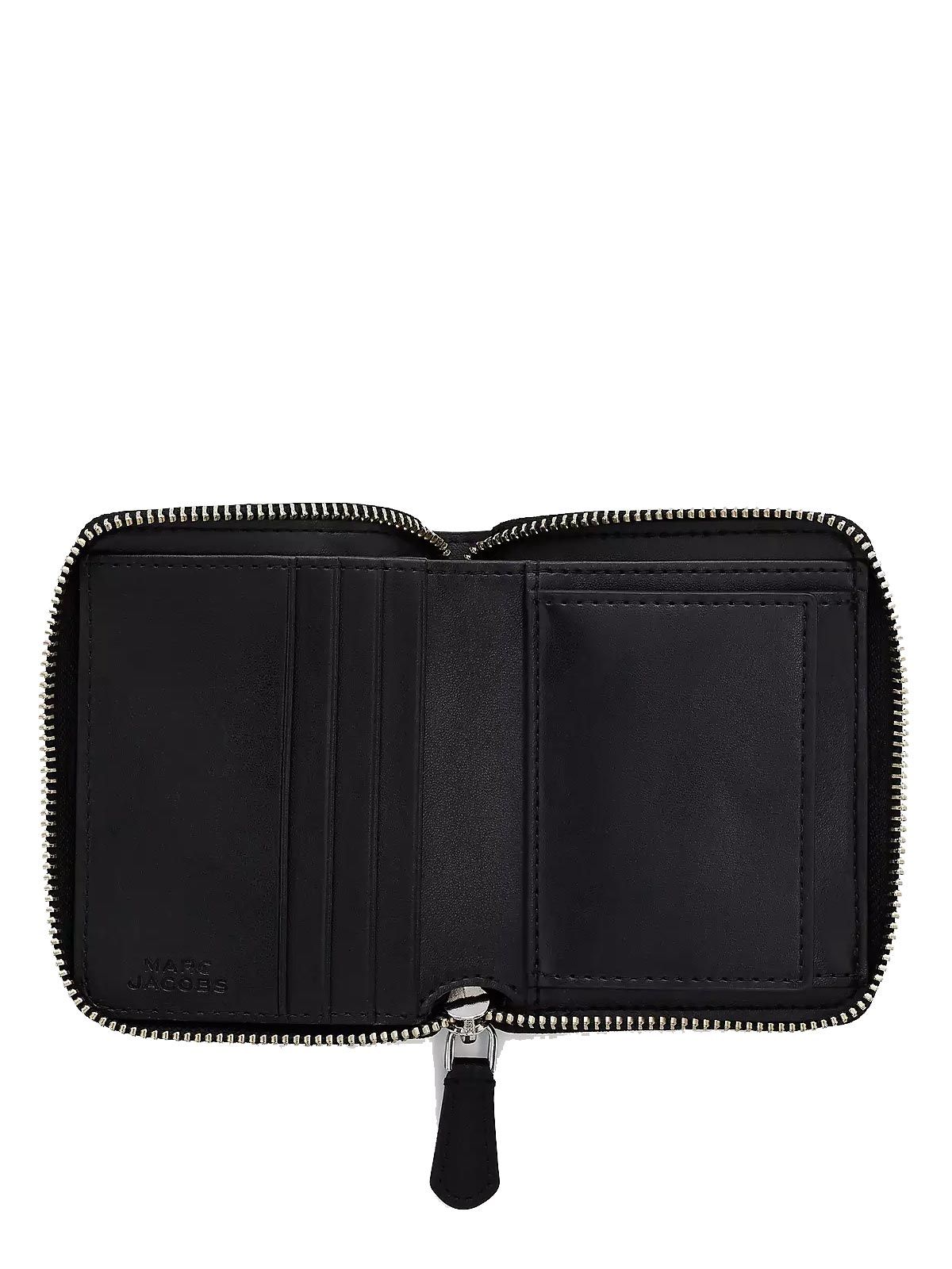 Crafted from smooth and uniform leather, this slim compact black Marc Jacobs wallet stands out thanks to the bright metallic logo detail that underscores its elegance. The lines remain clean and minimalist, without sacrificing a complete structure: four dedicated card slots, a compartment for bills, a practical internal snap coin pouch, and an external zip pocket that adds a touch of versatility. Just close the zipper, fasten the snap button, and you’re ready to go: this slim compact black Marc Jacobs wallet is a compact accessory that offers maximum functionality with discretion.
