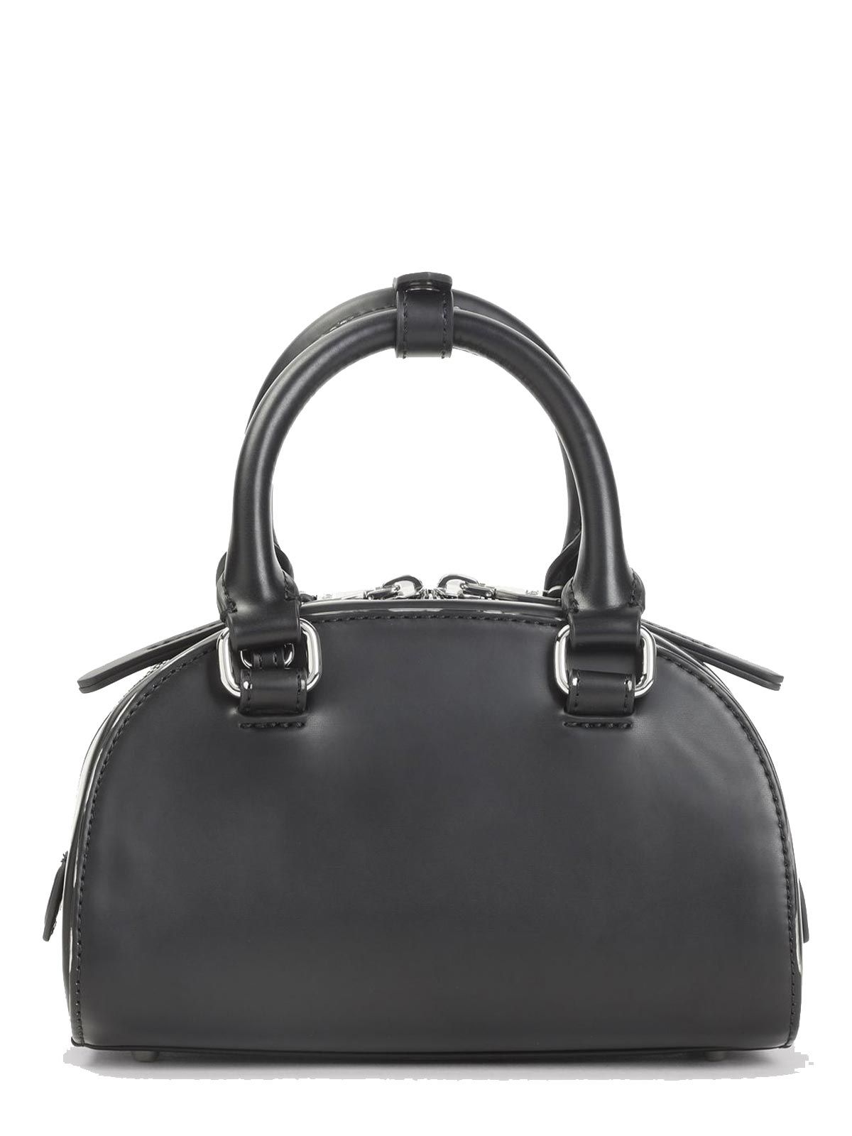 The material's intense black is embellished with metal elements and a striking silver zipper that refines its contours. The short, sturdy handles make the Diesel 1DR DOME black handbag the perfect ally for a sophisticated look, to be carried comfortably by hand.