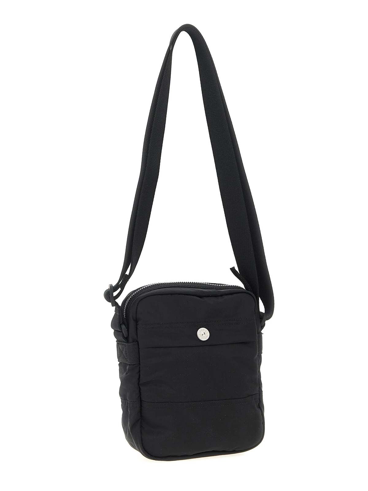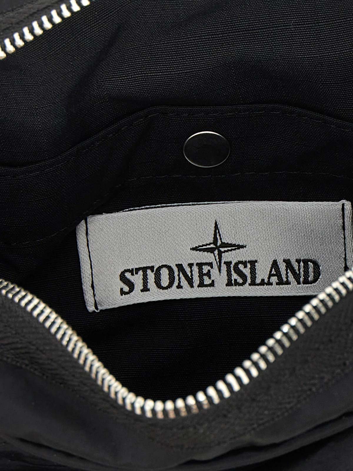 The top zipper closure keeps contents secure, while the adjustable webbing shoulder strap allows you to comfortably carry your black Stone Island clutch bag on your shoulder or crossbody, perfect for urban and active use.