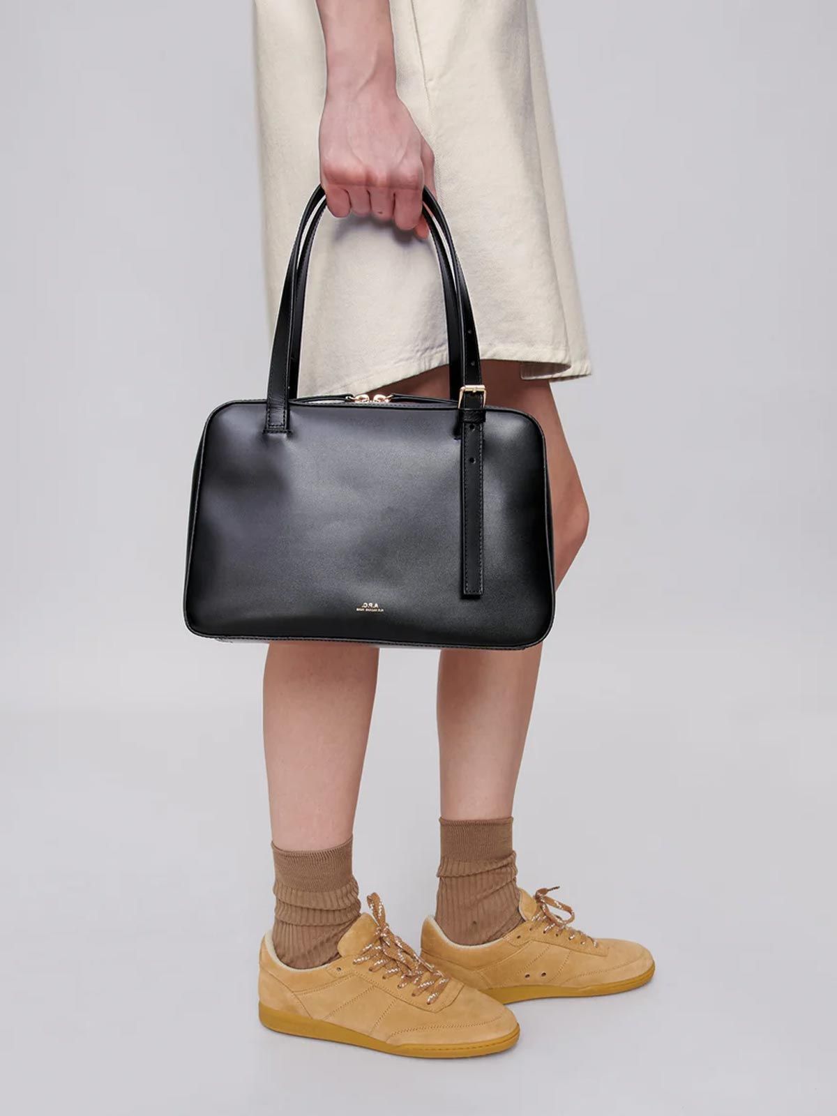 The black A.P.C. Horizontal Virginie bag is the expression of functional, everyday luxury. Crafted from 100% smooth cowhide leather sourced from Spanish material and made in Morocco, it combines impeccable construction with a versatile design. Its clean lines are enhanced by the meticulous gold-toned metal hardware, which adjusts the two handles allowing for elegant hand or shoulder carry, as well as the adjustable shoulder strap for practical cross-body use.