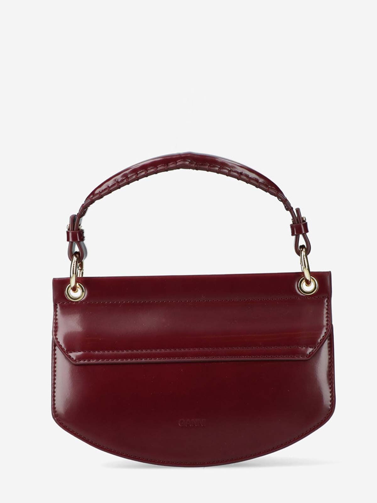 With its structured silhouette and distinctive details, the Ganni Apo-G Mini Bag in Bordeaux with Handle is the ideal accessory for those seeking a touch of sophisticated elegance and everyday functionality.