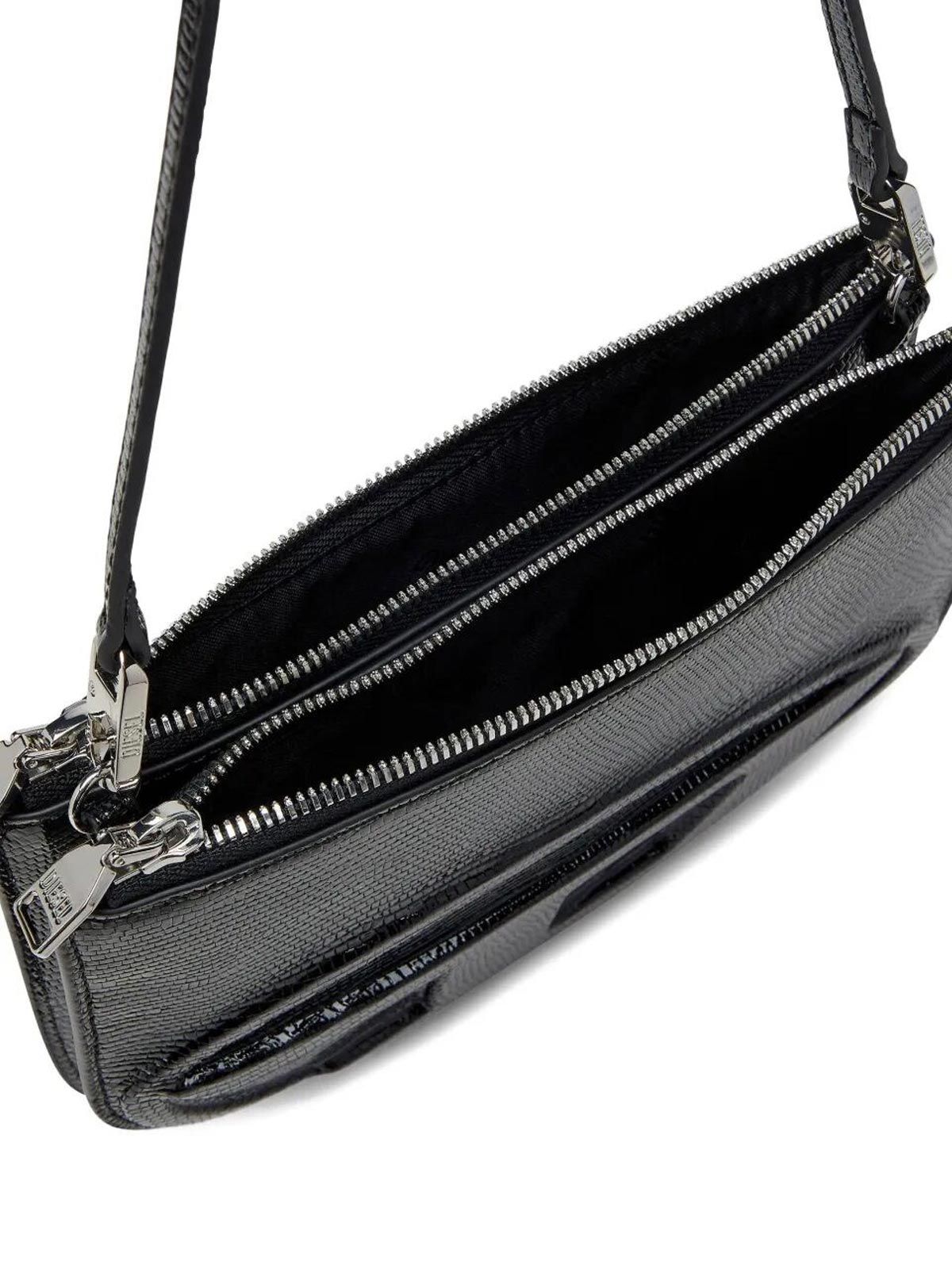 Made in Italy from high-quality leather with a distinctive glossy animalier texture, the black Diesel 1DR Twin bag is completed with a double strap, one of which has an elegant fluffy finish. The entire design is enhanced by a maxi Oval D logo embossed in relief, a detail that marks its exclusivity and unique identity.