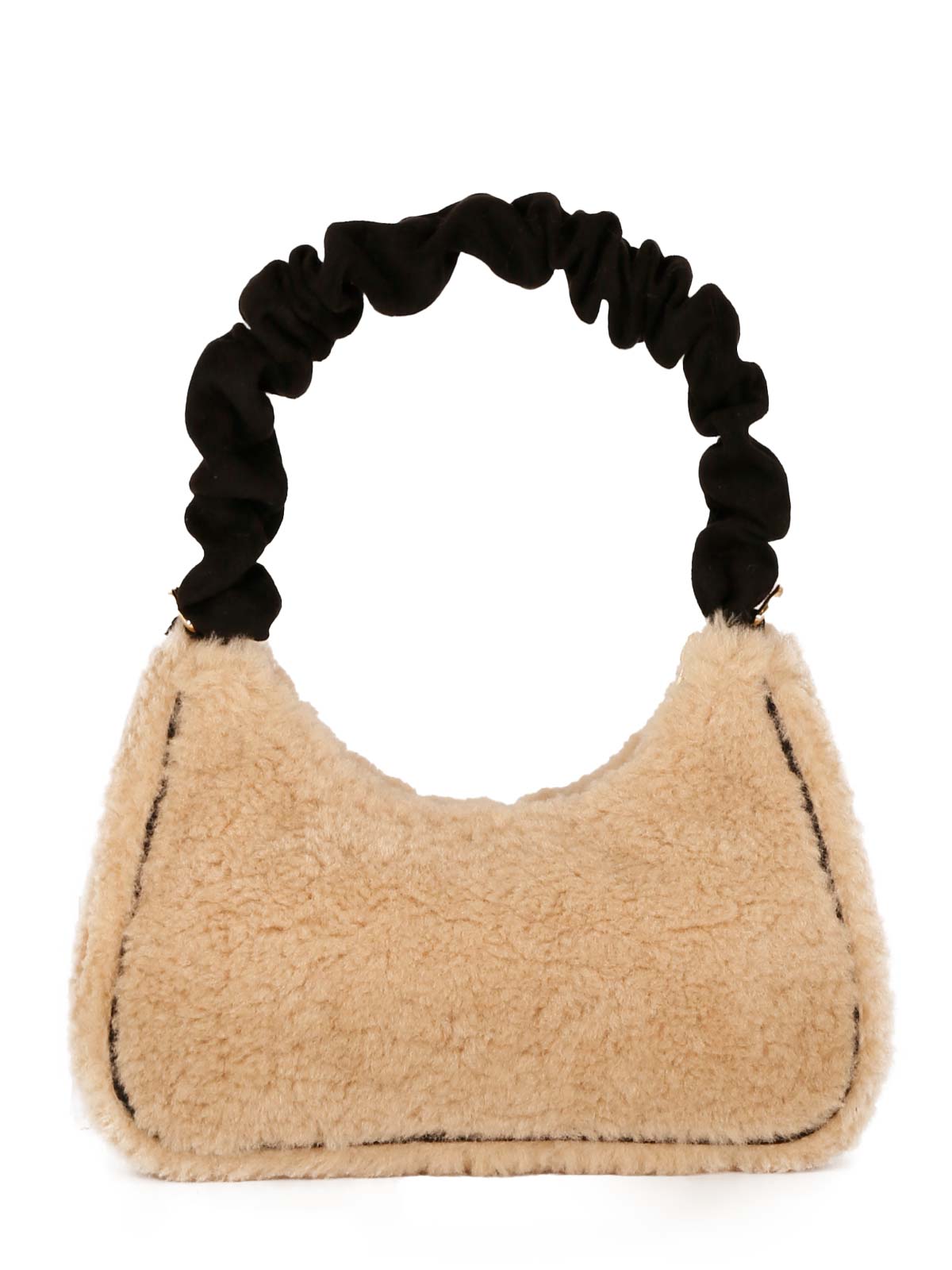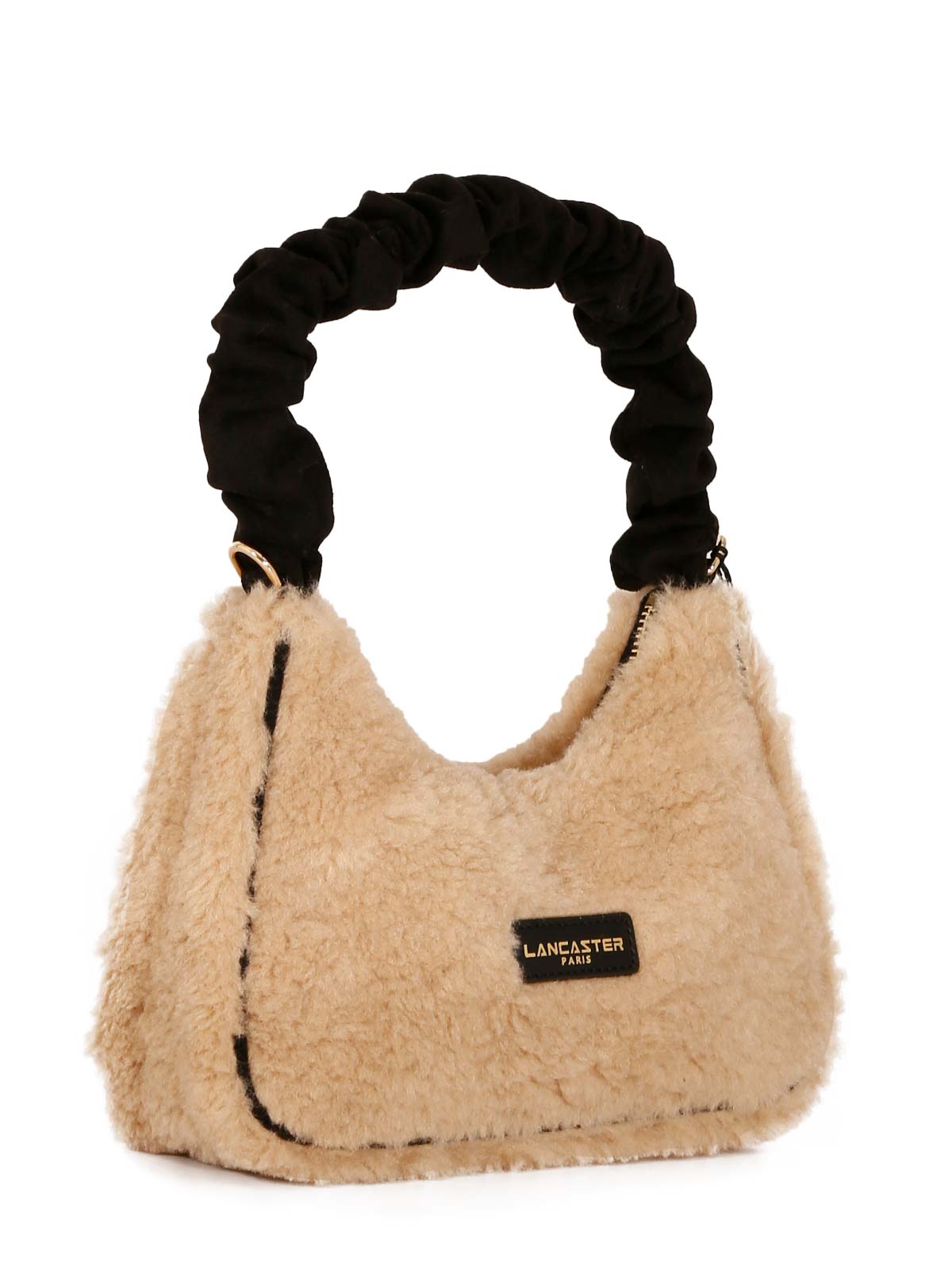Elegant and soft, the beige Lancaster Polaire Chouchou baguette bag is an irresistible accessory. Crafted from plush faux fur, it features a well-organized interior with a spacious main compartment, a practical slip pocket, and a secure zippered pocket. Its versatility is guaranteed by the "scrunchie" handle for a chic hand-carry option, and the removable, adjustable long strap that allows it to be comfortably worn on the shoulder or as a crossbody.