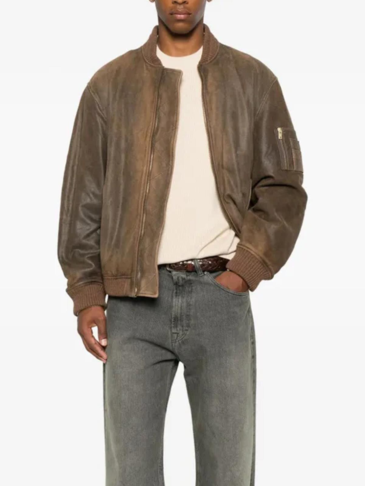This padded Golden Goose brown jacket in soft, high-quality sheepskin leather is the essence of contemporary style. The classic design, reimagined with a regular fit for the modern man, combines comfort and functionality. The full-zip front closure and ribbed details on the collar, cuffs, and hem not only ensure a perfect fit but also add a distinctive touch.