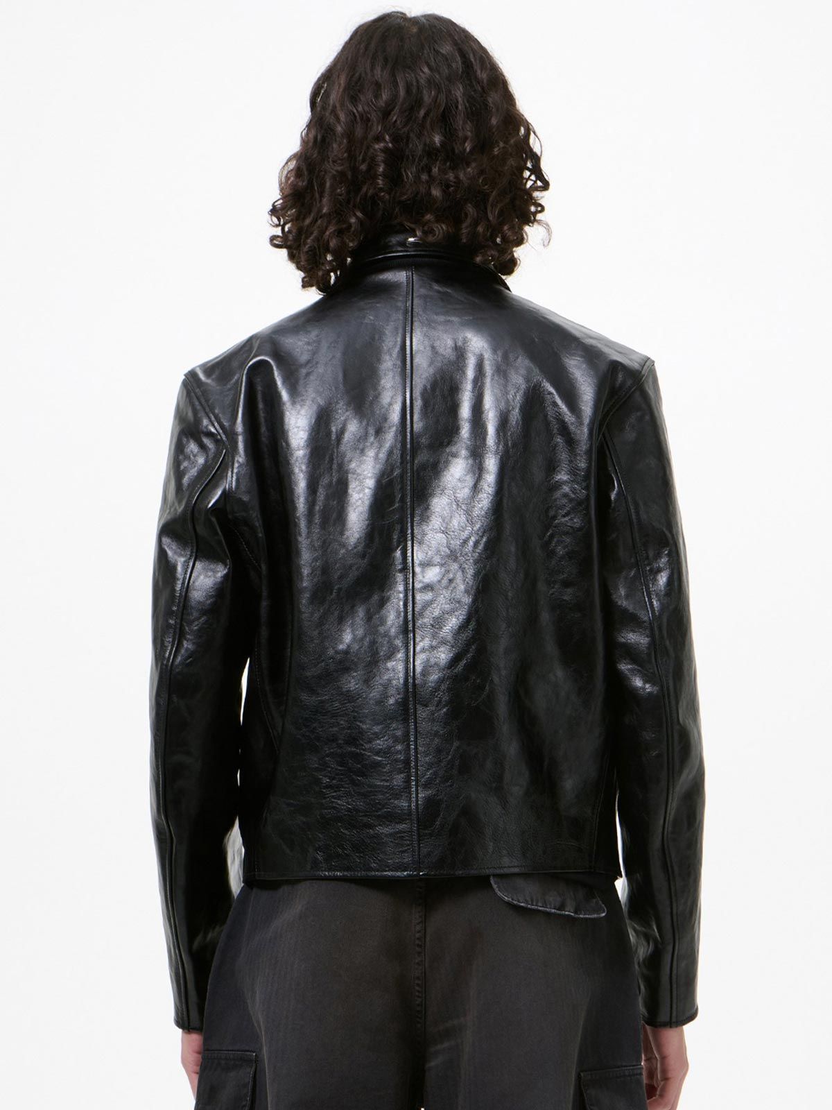 This garment defines essential elegance. Our Our Legacy black leather jacket is a minimalist creation, crafted from premium Italian leather, garment-dyed, and subjected to vegetable tanning which ensures its character and durability.