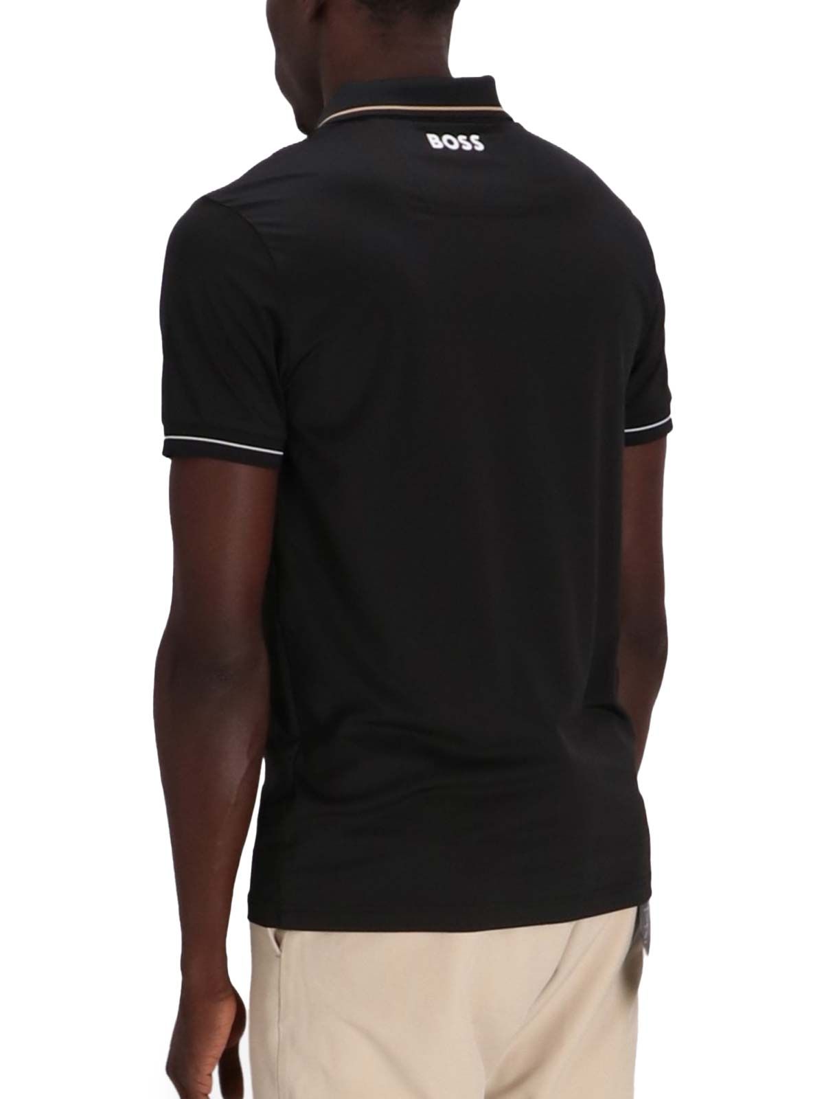 Whether you're on the green, the court, or under the August sun, the Hugo Boss Paul Pro black men's polo shirt is designed to accompany you with style and agility. Its technical, stretchy, and quick-drying fabric moves with you, ensuring comfort and freedom. The details make the difference: a refined knitted collar, signature buttons, and contrasting logos for an elegant yet never excessive identity.
