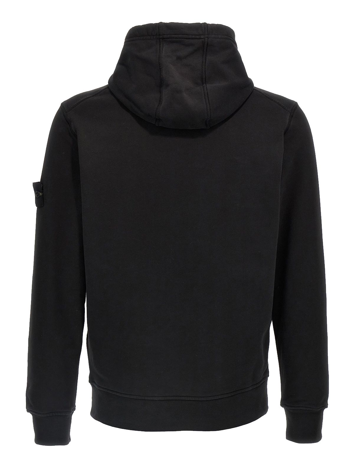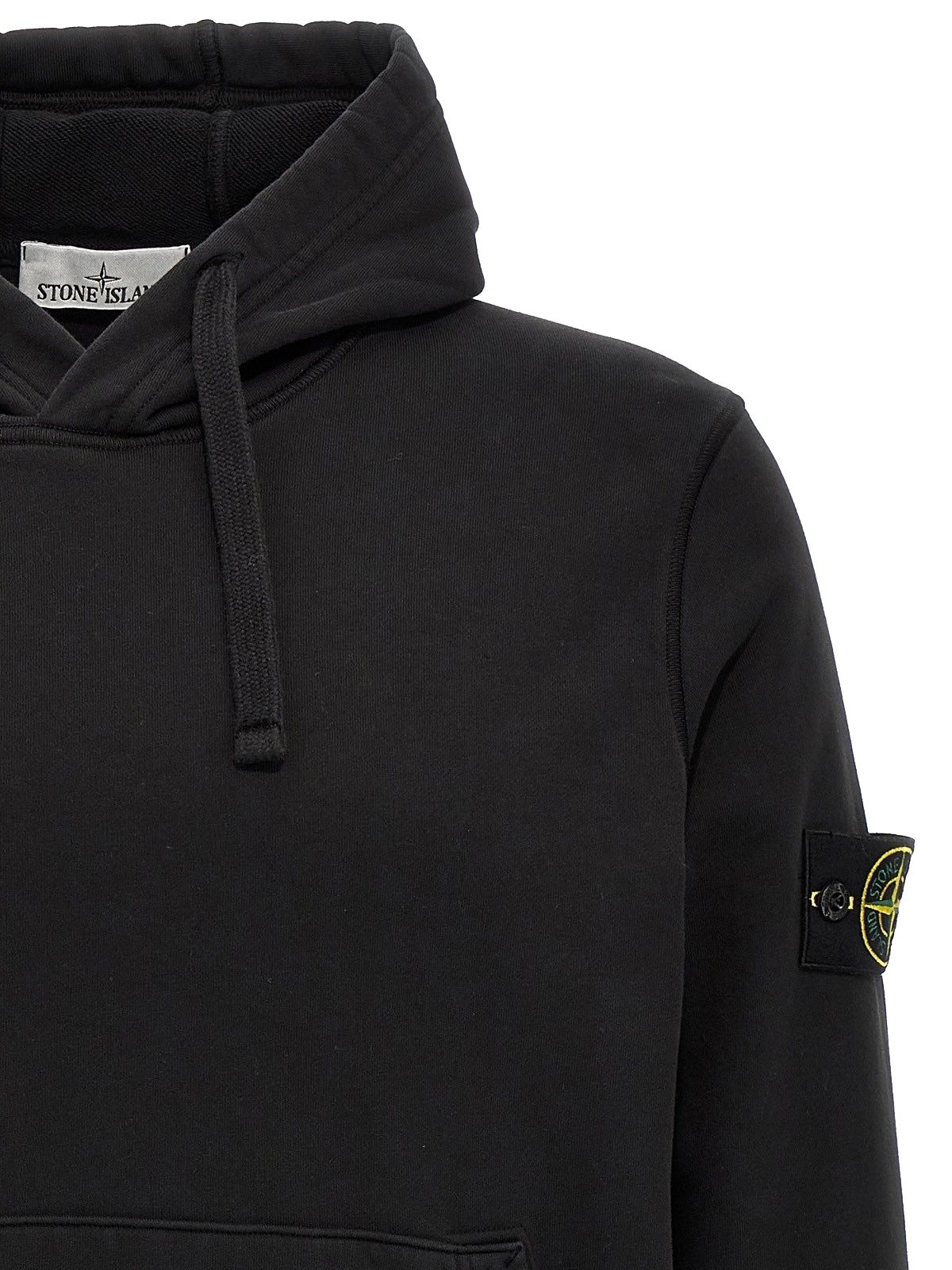 Every detail is designed for perfect functionality. The hood has a drawstring for a personalized fit, the pouch pocket has an angled opening for easy access, while the inner lining at the back of the neck and the ribbed cuffs and waistband add comfort and an optimal fit. The Stone Island logo on the left sleeve is a standout feature, giving your black Stone Island fleece hoodie a distinctive touch.