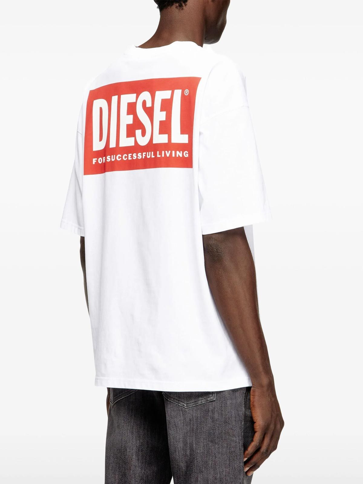 The Diesel White Boxt Bisk T-shirt features a relaxed fit with short sleeves, crafted from soft organic cotton jersey for everyday comfort without compromising on style. A subtle Diesel For Successful Living print on the left chest adds character, while the back is dominated by the iconic extra-large Diesel Biscotto logo, creating an instantly recognizable and bold look. The classic crew neckline completes the design, making the Diesel White Boxt Bisk T-shirt a versatile and distinctive piece.