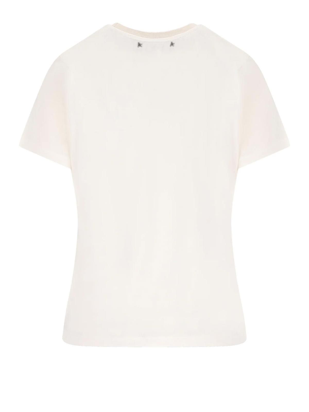 In honor of the rebellious and carefree spirit of the seventies, this women's white Golden Goose T-shirt is the perfect piece to kick off the season. Part of our new Journey Collection, this white slim-fit tee is enhanced with a special "burned out" treatment that gives it a distressed effect and vintage feel.
