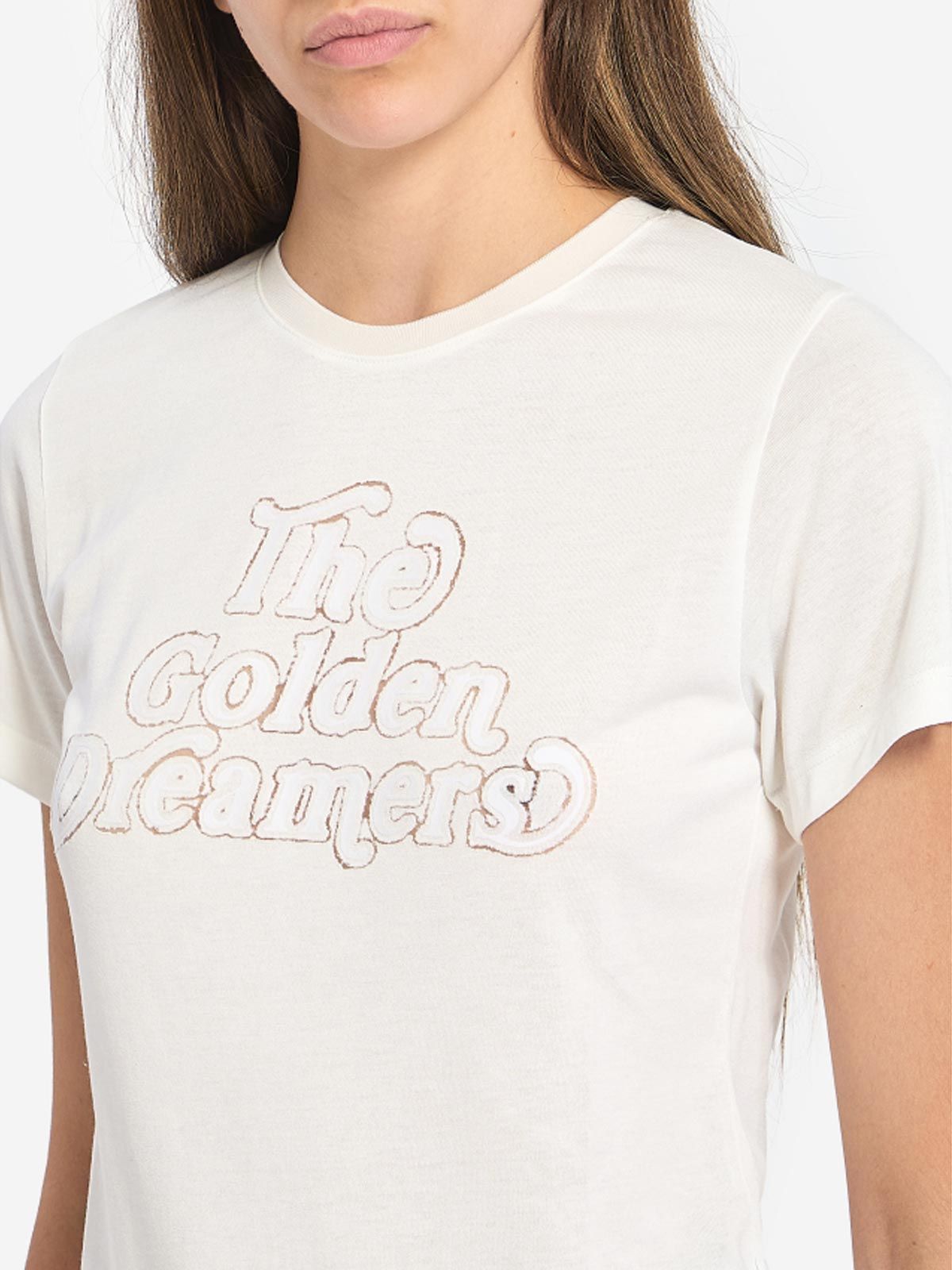 The design is made unique by the front print with the words "The Golden Dreamers," celebrating the dreamy and creative spirit of the era. The micro-ribbed edges and two iconic stars on the back are the final details that complete the look.