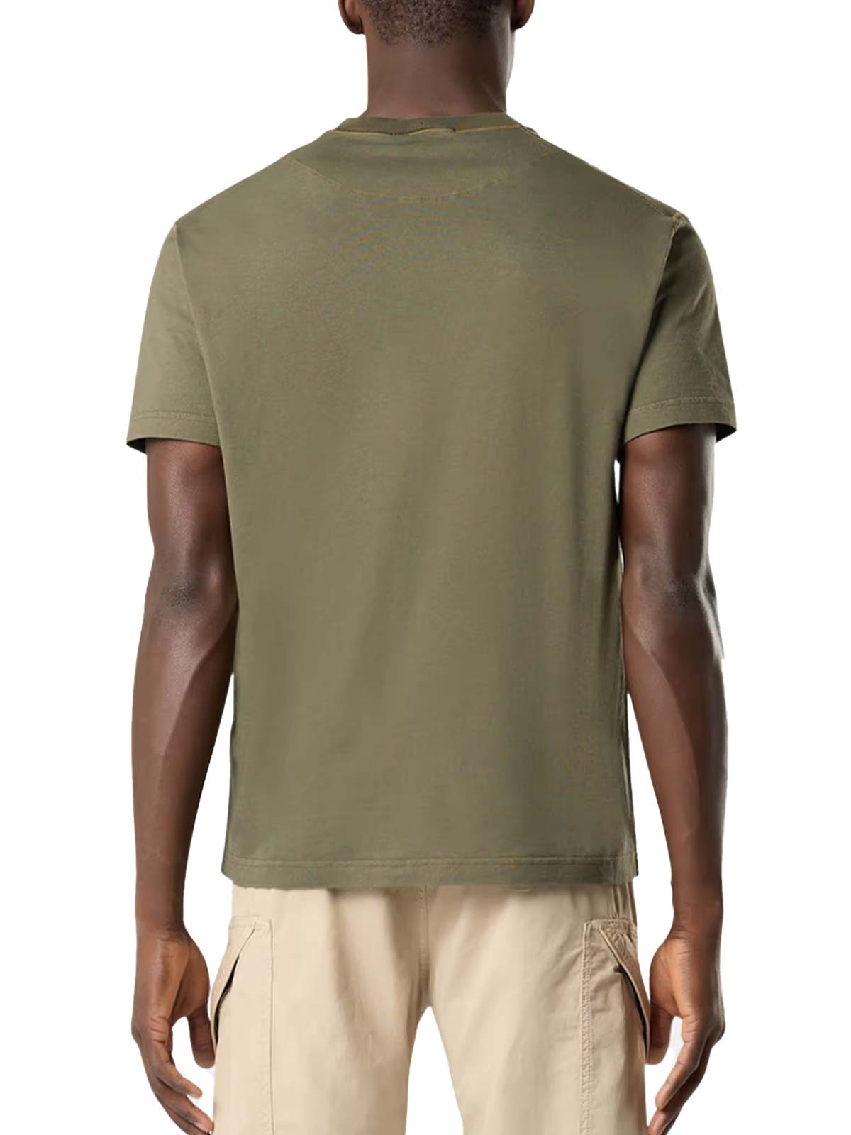 Its distinctiveness lies in the "Fissato" treatment: thanks to a unique application of water-soluble resin combined with the garment-dyeing process, this T-shirt reveals a surprising three-dimensional effect, imparting unprecedented visual and sensory depth.