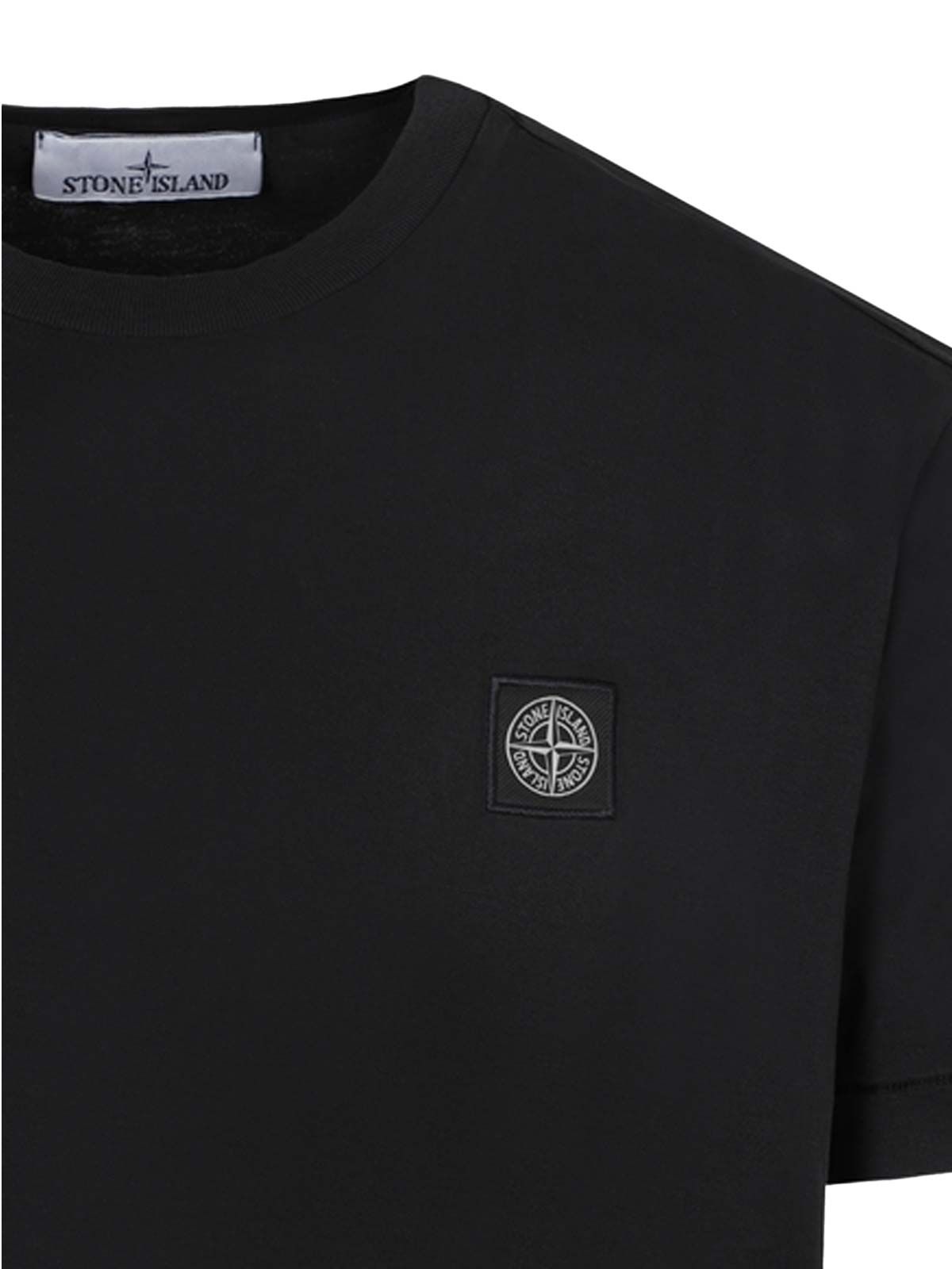 Immerse Yourself in Essential Design and Superlative Quality with this black Stone Island short-sleeve t-Shirt. Meticulously crafted from soft cotton jersey, this t-shirt offers enveloping comfort and an impeccable fit. The garment is embellished with a distinctive Stone Island Compass logo patch, proudly positioned on the chest—an unmistakable symbol of authenticity and a spirit of discovery. The bottom hem is finished with raised stitching, lending a touch of sartorial elegance and defined structure to the overall design. Each t-shirt undergoes an exclusive garment dyeing process, which bestows unparalleled color depth and a unique texture, destined to evolve beautifully over time.