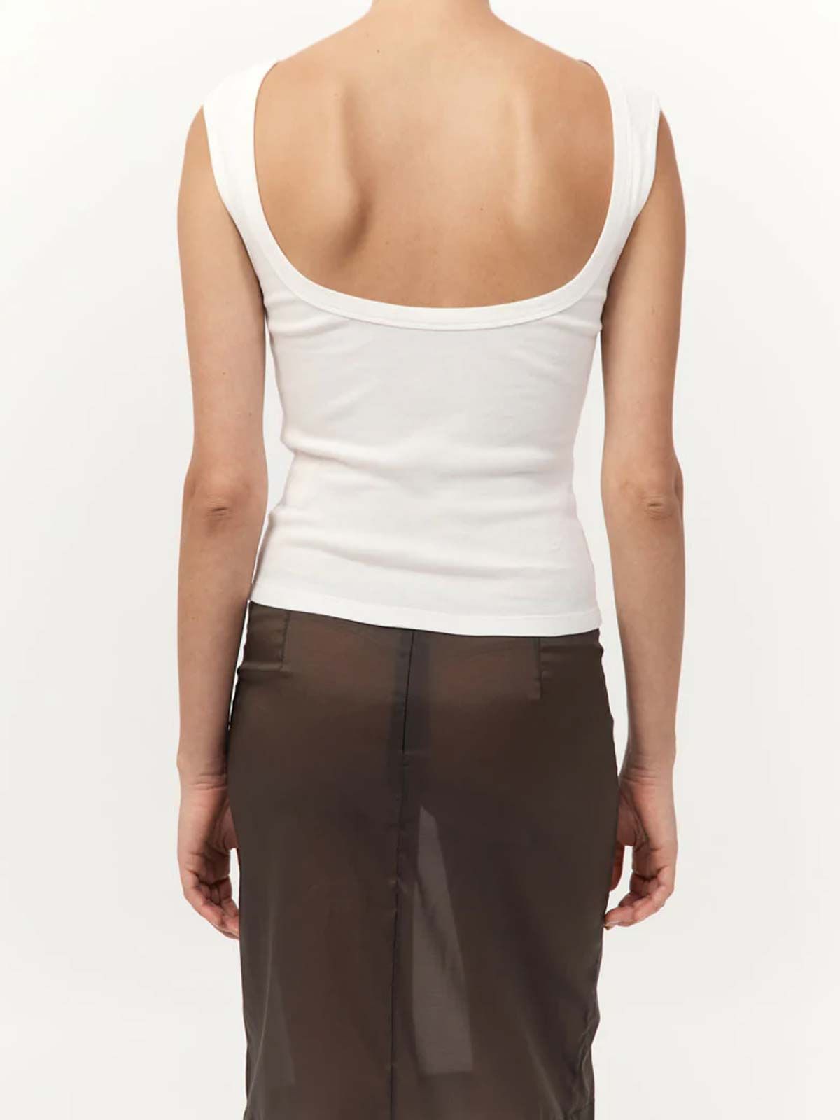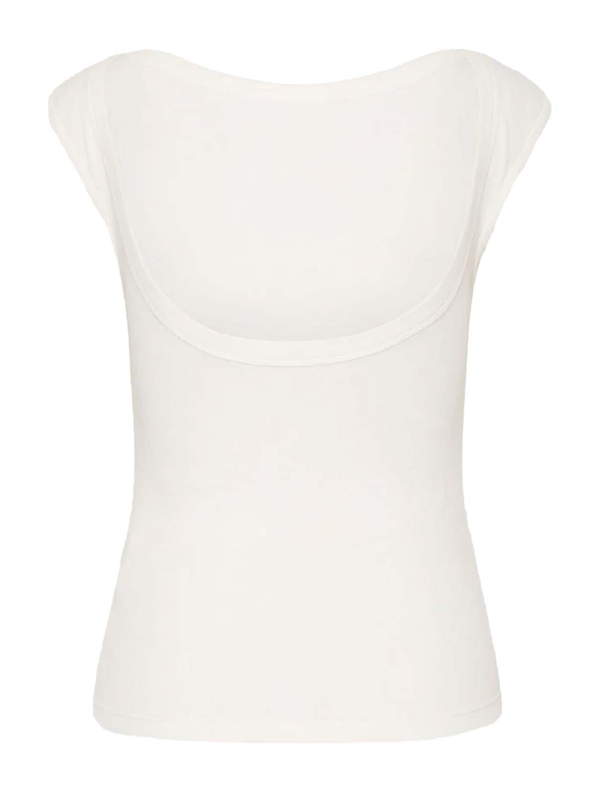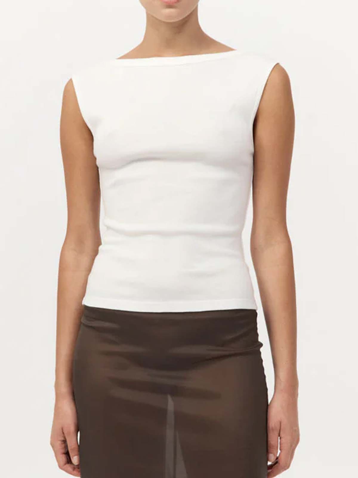 Its elegant and fitted silhouette is distinguished by a seductive boat neckline that enhances the shoulders and a tastefully open back that adds a touch of discreet sensuality. Infinitely versatile and refined, this St. Agni white ballerina top is a key wardrobe piece that evokes the lightness and harmony of dance.