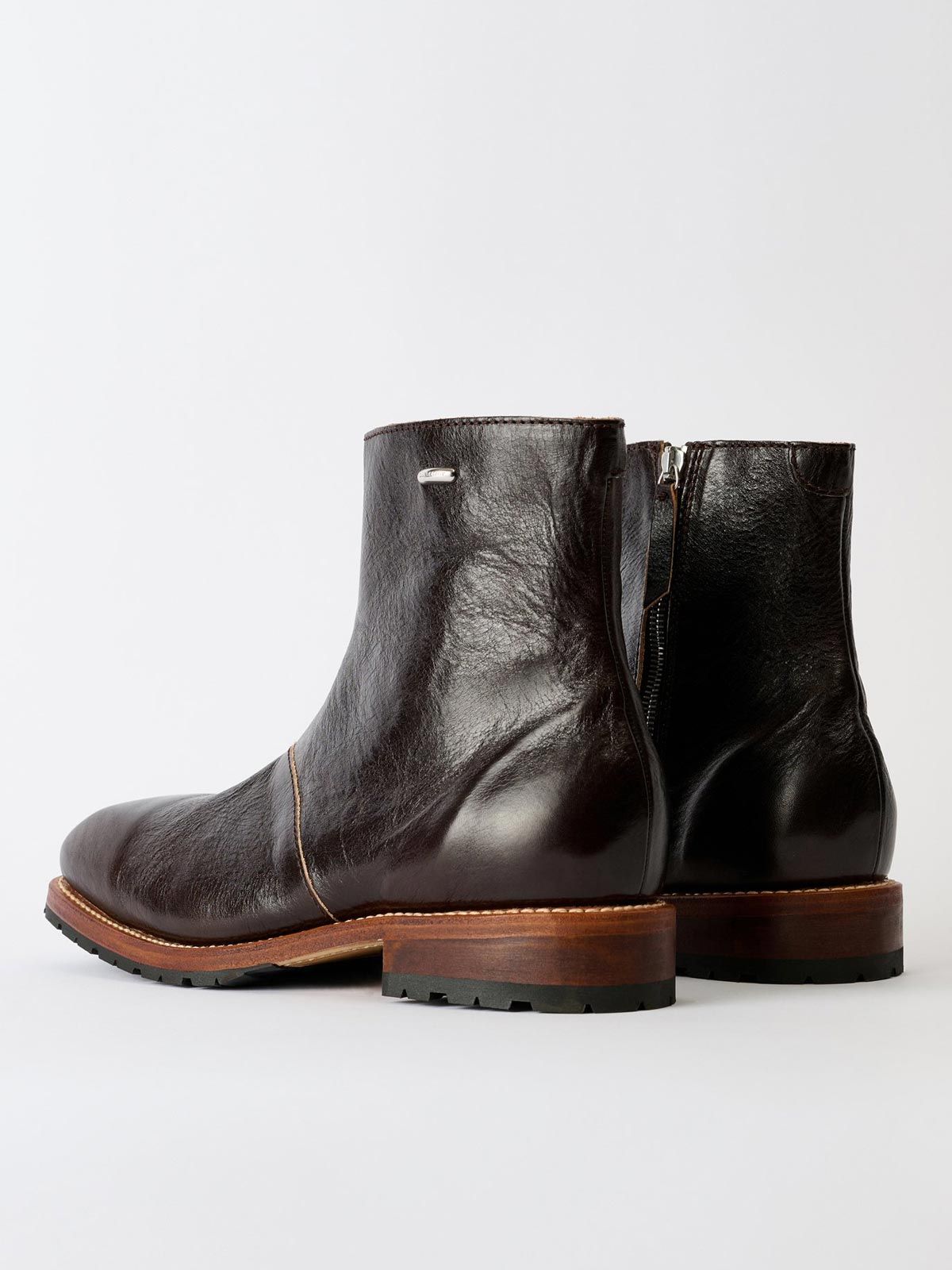 At the base, you'll find a tenacious Vibram outsole featuring deep lugs, paired with a Kilger leather midsole sourced from Germany. The design is made functional by a Lampo side zipper, while a discreet metal rivet bearing the Our Legacy logo seals its quality.