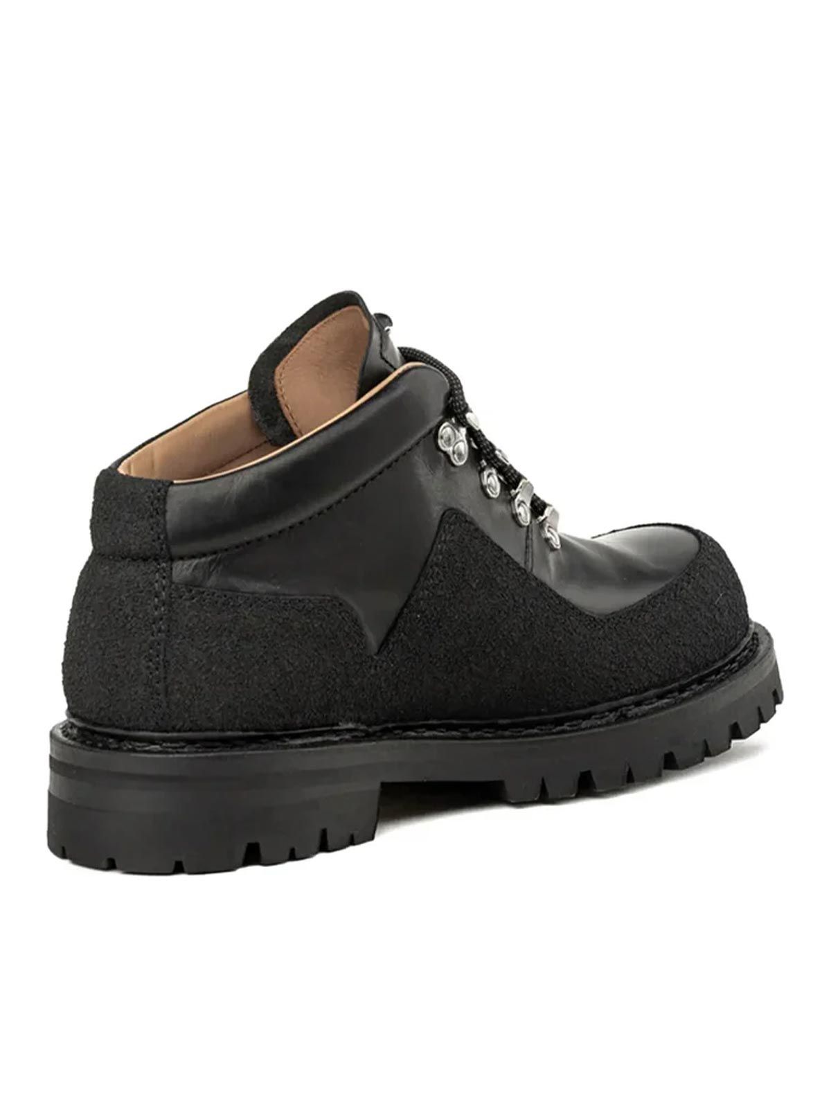 Introducing the Our Legacy Quest black boots, presented here in the black elastic cowhide leather variant. Inspired by the rugged aesthetic of traditional trekking, but reinterpreted in a modern key with high-quality Italian leather, the Quest is synonymous with durability and enveloping comfort.
