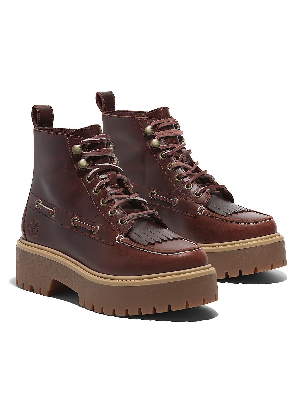 Awaken your rebellious spirit. The Timberland Women's Stone Street fringed platform boots rewrite the rules with a bold aesthetic. The upper in Timberland® Premium Leather meets ecological sensibility: the lining in ReBOTL™ fabric is made with recycled PET. Underneath, the design is powerful, amplified by the rubber outsole partially sourced from regenerative agriculture.