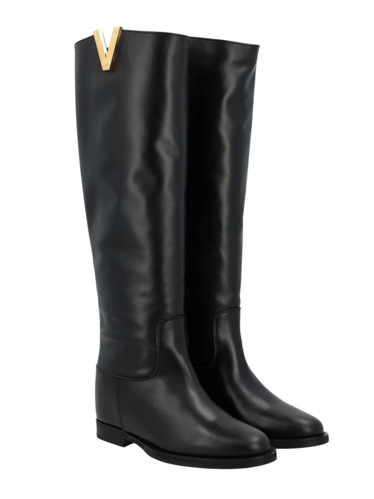 Attention to detail is evident in the smooth calfskin, which offers a sophisticated look, while the leather sole with a half-rubber insert ensures excellent grip and durability. Additionally, the 2 cm external heel and a 5 cm internal wedge elongate your figure, maintaining maximum comfort throughout the day. Made entirely in Italy, the black Via Roma 15 Santa Monica boots are finished with a gold, textured 'V' that adds a touch of light, celebrating artisanal mastery and timeless elegance.