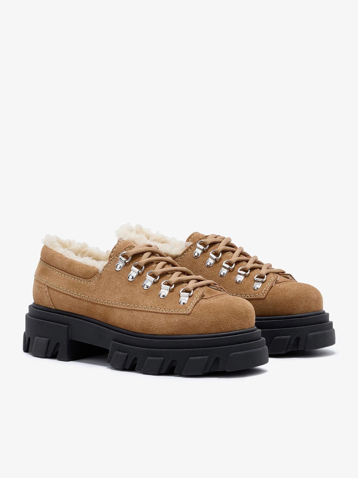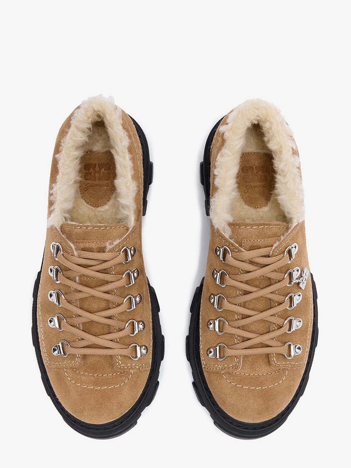 These Ganni brown derby shoes transform a timeless classic into a bold and contemporary style statement. Blending the robustness of traditional design with unexpected details, they are the perfect footwear for those who want to combine elegance and character. The silhouette is defined by a rounded toe and a traditional lace closure, enhanced by lace hooks that add a touch of hiking or workwear inspiration.