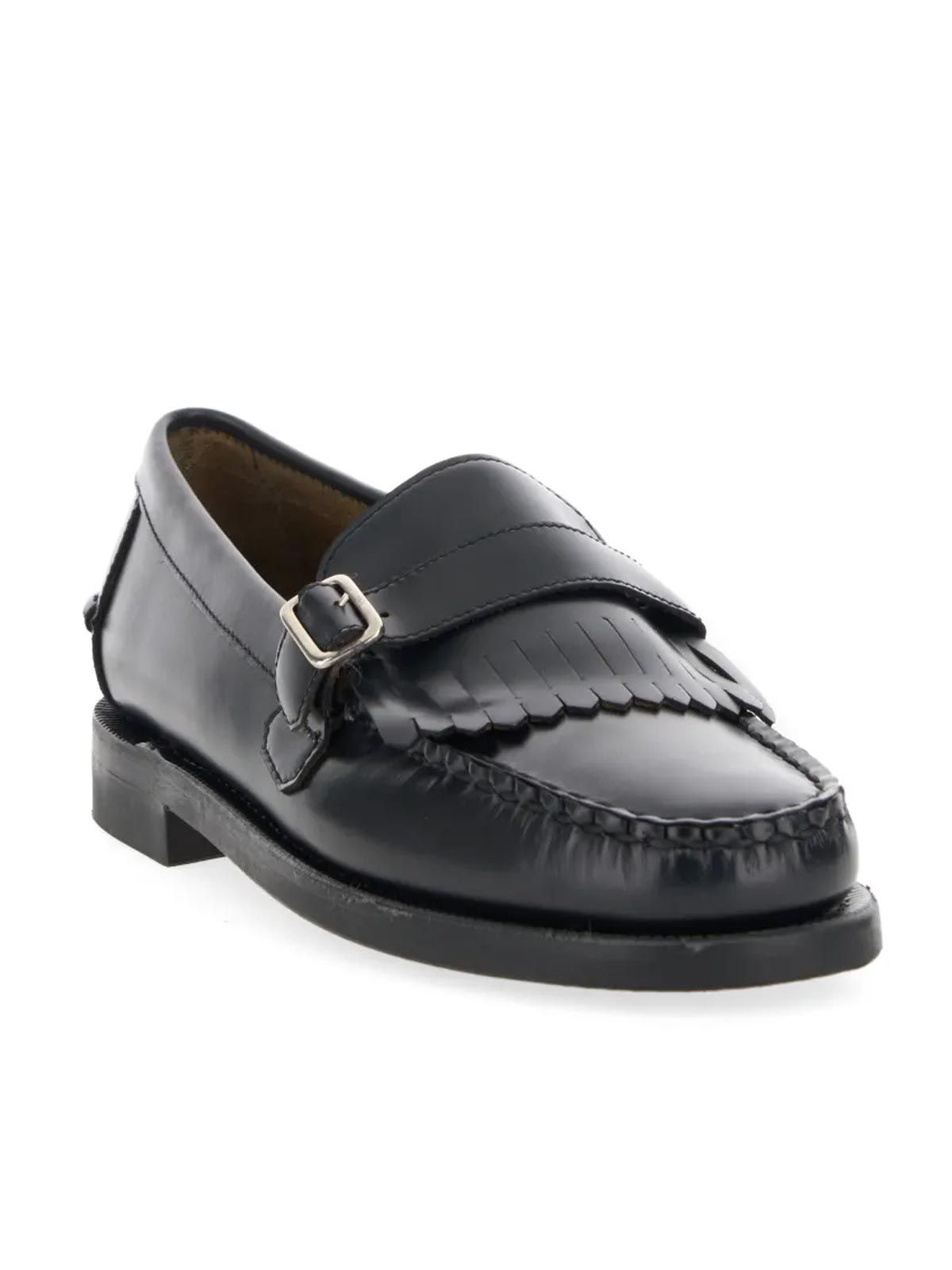 Crafted from brushed full-grain leather, the Sebago Ales loafer boasts a rich, polished surface that immediately captures attention. It's the unique details, however, that infuse character: the hand-stitched apron, the distinctive strap, and a perfectly designed fringe add personality and movement to your stride.