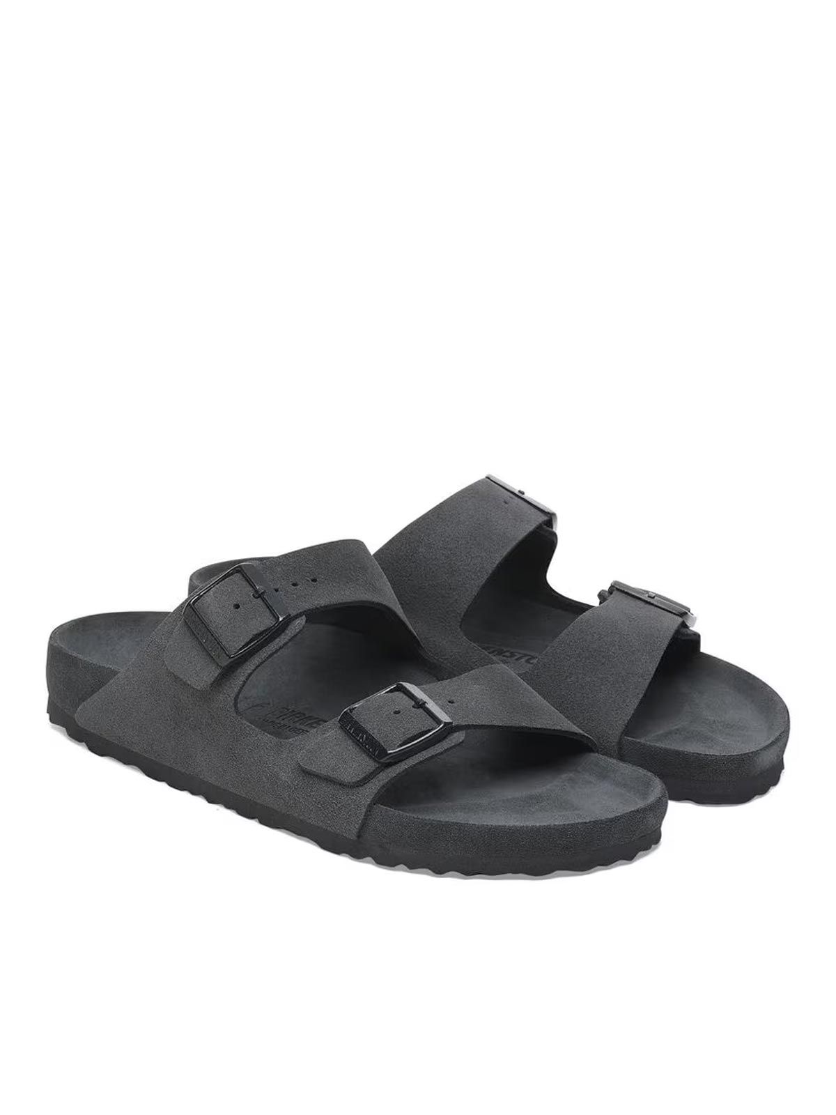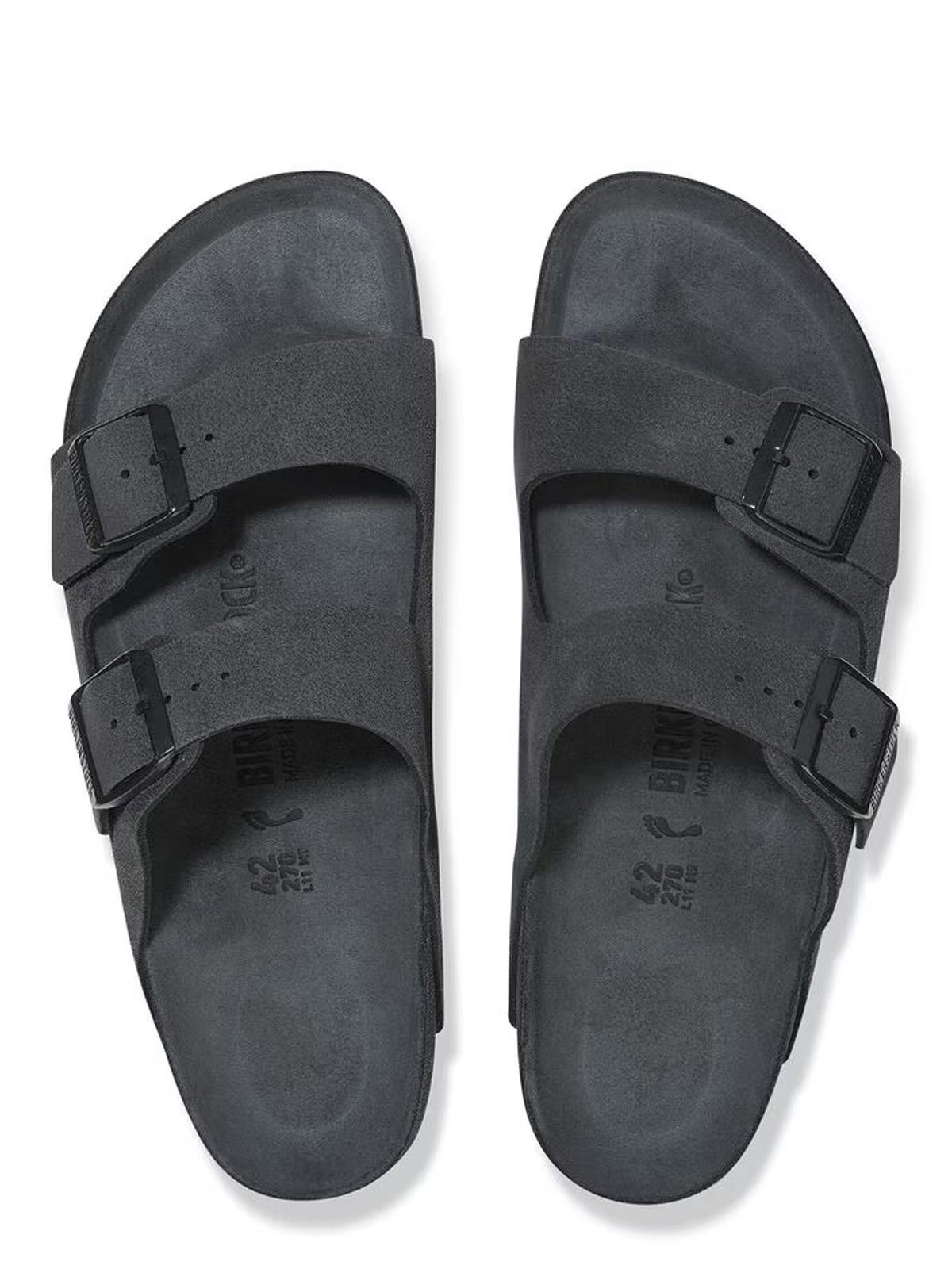 The fit is elevated by the coordinated semi-exquisite footbed, which is entirely lined in soft suede that cradles the foot with extraordinary comfort. The upper is crafted from suede of the highest quality, so supple it envelops the foot like a second skin. The BIRKENSTOCK Arizona Allover Charcoal unites a minimalist aesthetic with unmatched well-being.