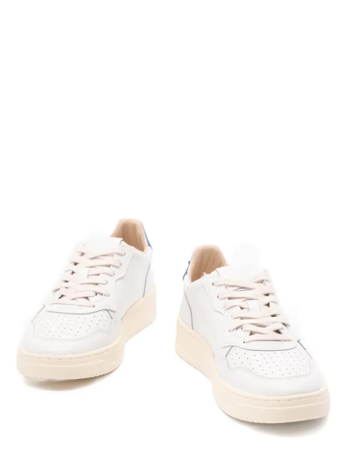 The Autry Medalist Low women’s sneakers in white and sky blue with lettering blend heritage-inspired aesthetics with a vibrant contemporary energy. Crafted from soft, pristine leather, these shoes provide superior comfort, enhanced by a perforated toe designed for excellent breathability. A signature detail is the sky-blue leather heel insert, adding a fresh and subtle pop of color. Finished with the unmistakable Autry logo on the side, these Autry Medalist Low white and sky-blue sneakers with lettering are perfect for those seeking a versatile and sophisticated shoe that expresses a discreet yet impactful personality.