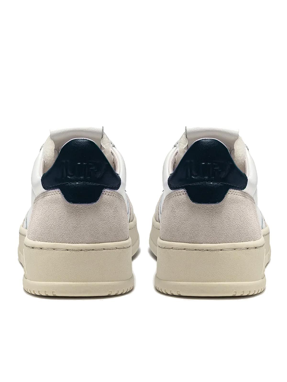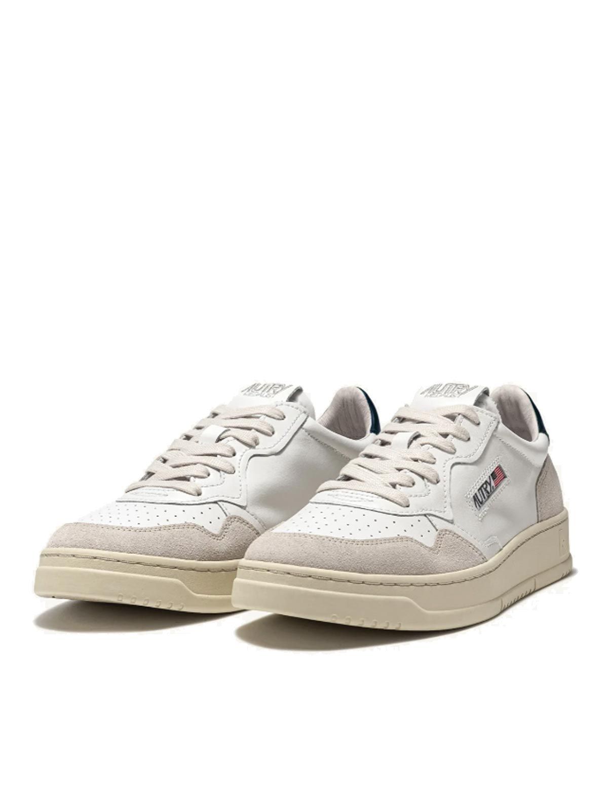 The Autry Medalist Low white and blue sneakers reinterpret the iconic ’80s tennis aesthetic through modern lines and premium materials. The soft white leather upper delivers timeless sporty elegance, while the blue suede inserts introduce a bold, character-filled contrast. The heel, finished with a blue leather panel featuring the renowned Autry logo, adds a distinctive accent that instantly draws the eye.