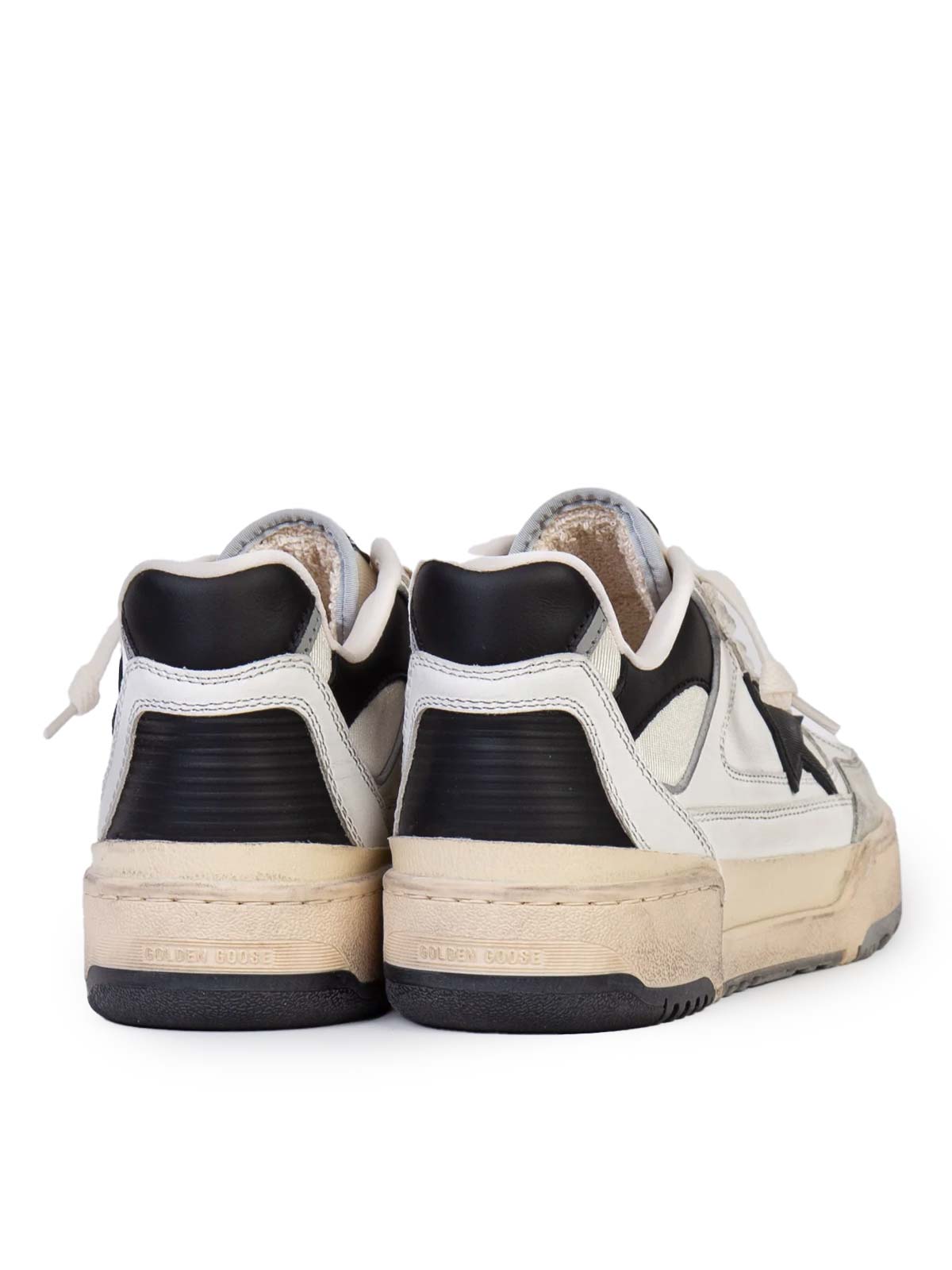 The 3D textured details, like the black TPU star and the black leather rear insert, along with the black leather heel tab, add a modern touch. Gray piping, an ice-gray suede toe, and vintage-effect white laces complete the look, making the white Golden Goose Forty2 sneakers a unique style icon.