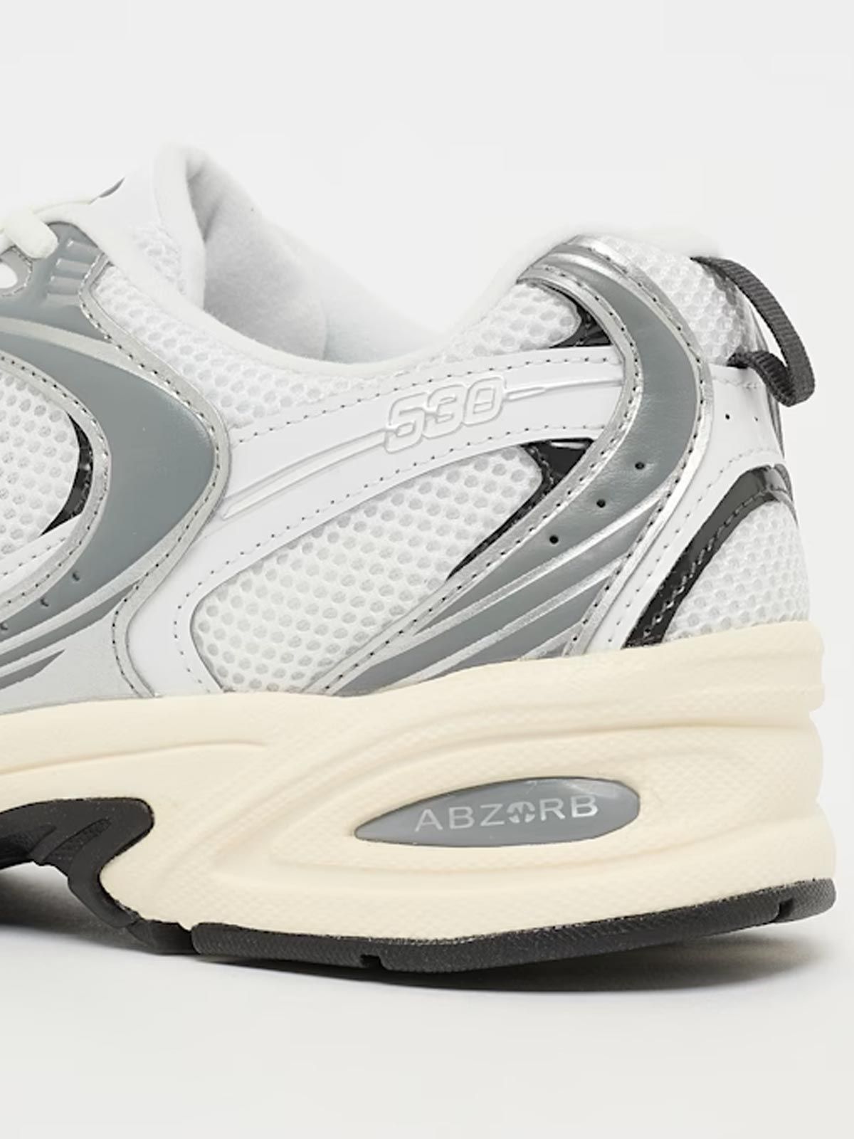 The New Balance 530 Silver and Black reinterpret the iconic MR530 model, blending the bold aesthetic of the 2000s with the performance of a running shoe. Now, this versatile silhouette perfectly adapts to your everyday style. The breathable mesh upper with dynamic synthetic overlays creates a distinctive and technological look. Underfoot, the segmented ABZORB midsole offers superior cushioning, ensuring comfort and support with every step.