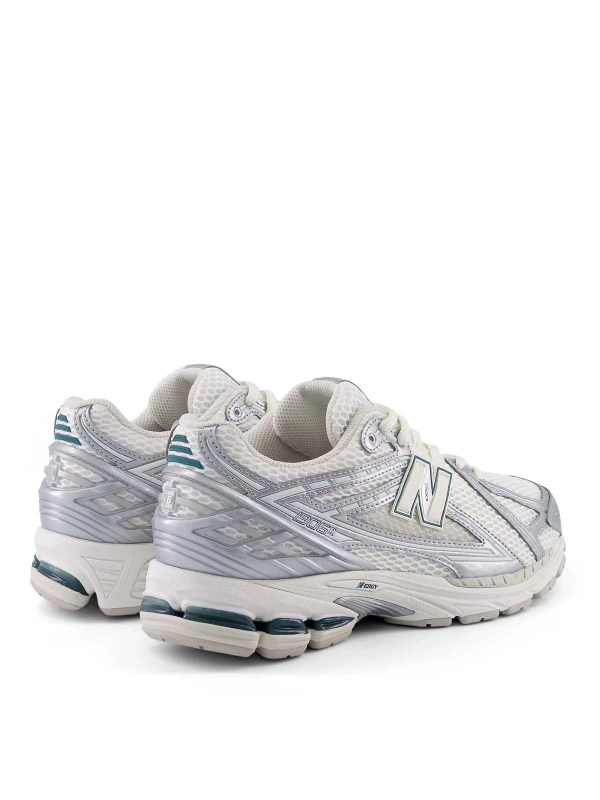 The upper, made from open-holed mesh with curvilinear synthetic details, perfectly reflects this high-tech vision. These men's silver New Balance 1906R sneakers are a modern tribute to an iconic design, blending the style of the early 2000s with top-level technical performance.