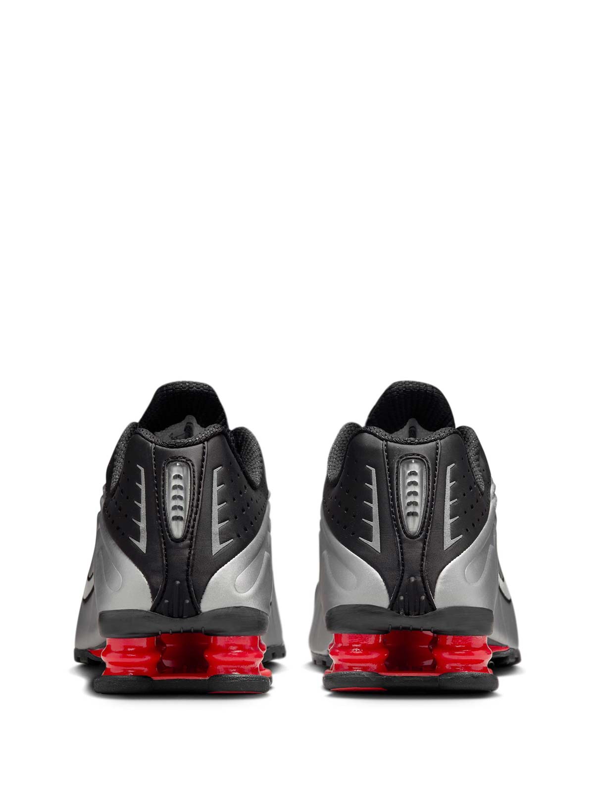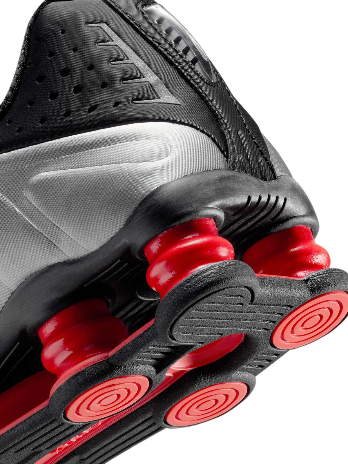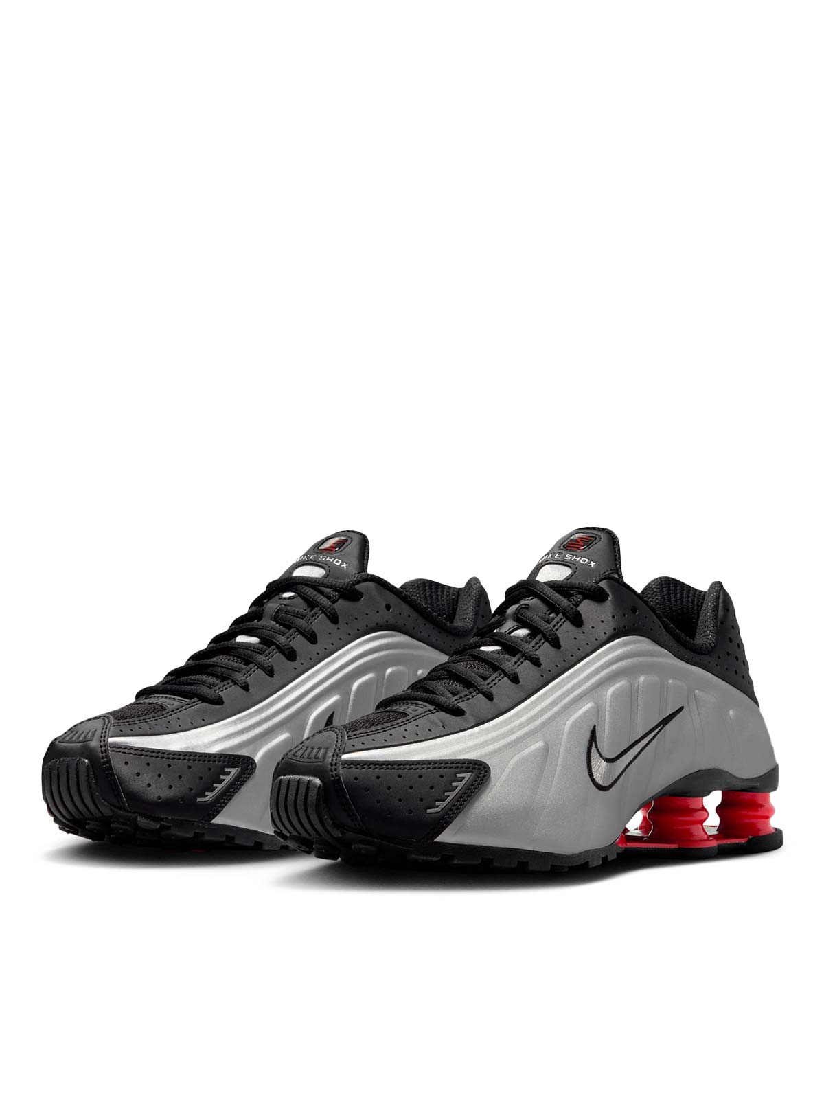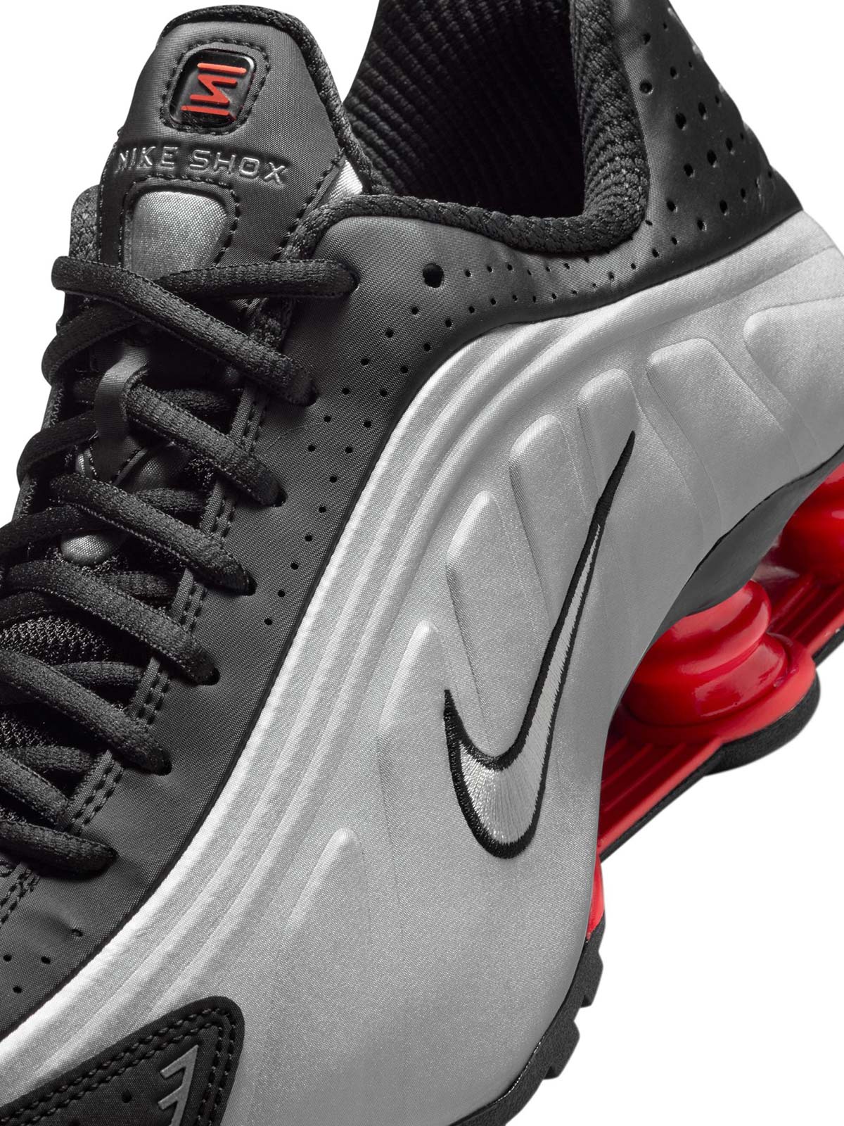 The Nike Shox columns, designed to support runners' strides, guarantee reactive and dynamic cushioning. The upper is an almost exact replica of the original 2001 model, while the outsole, with its distinctive circular waffle pattern, ensures impeccable traction. Laser perforations maximize breathability. Are you ready to wear your Nike Shox R4 Black and Metallic Silver?