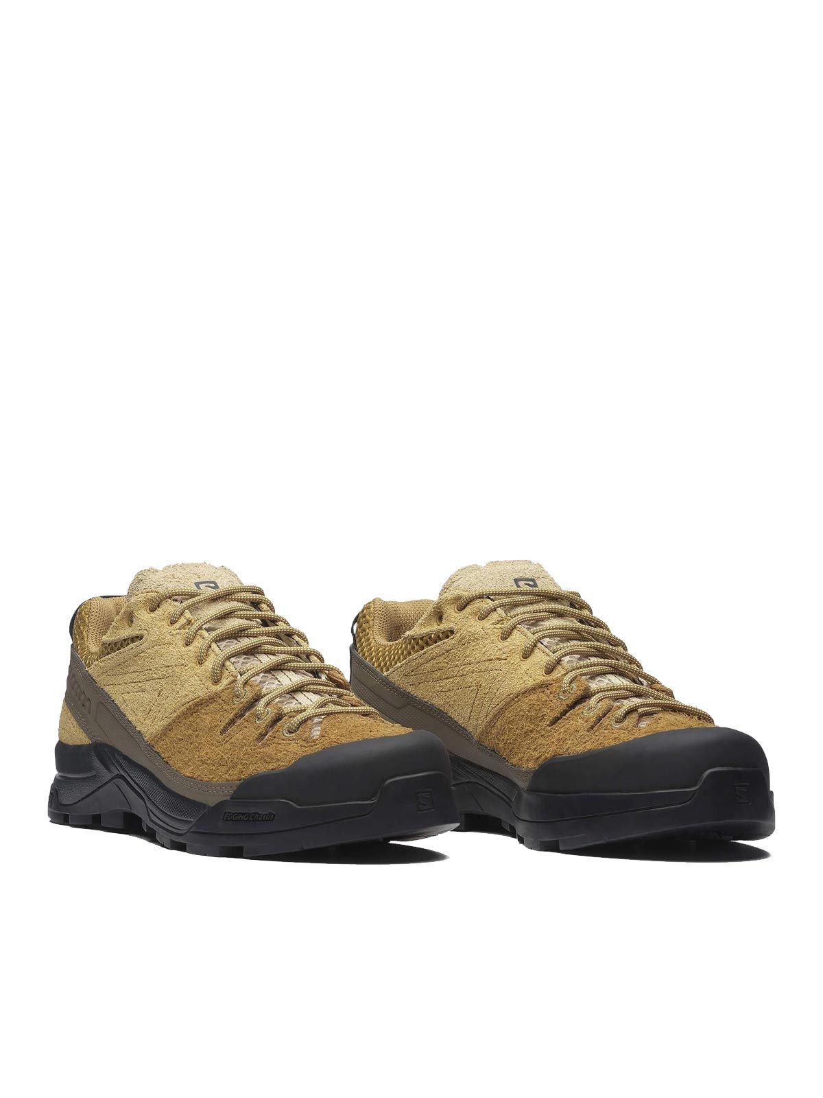 With the brown Salomon X ALP™ shoes, Salomon celebrates its heritage in mountaineering, reinventing the idea of an approach shoe. This hybrid model is not just footwear but a bridge between past and future, combining the ruggedness of a mountain shoe with the subtle elegance of a contemporary design.