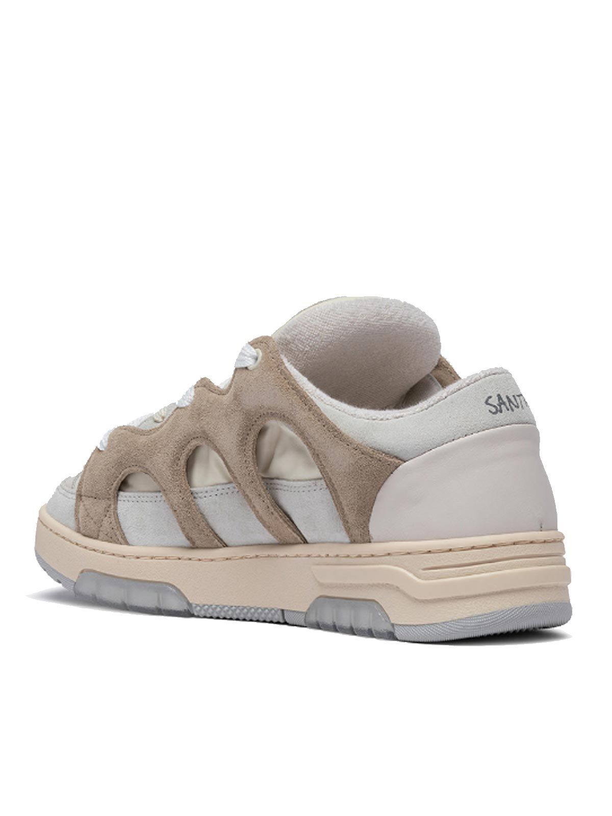 The Santha Model 1 cream sneakers for woman are a true celebration of Italian manufacturing expertise, where meticulous attention to detail merges with the use of excellent materials. The upper, crafted from premium suede, is enhanced by prominent stitching and perforated panels, the result of an artisanal finish that adds three-dimensionality.These sneakers are designed for optimal comfort: they boast a versatile double lacing system (in two different sizes) and superior cushioning thanks to the generously padded tongue and ankle collar. The heel, which is reinforced and customized with a logo, ensures necessary stability.