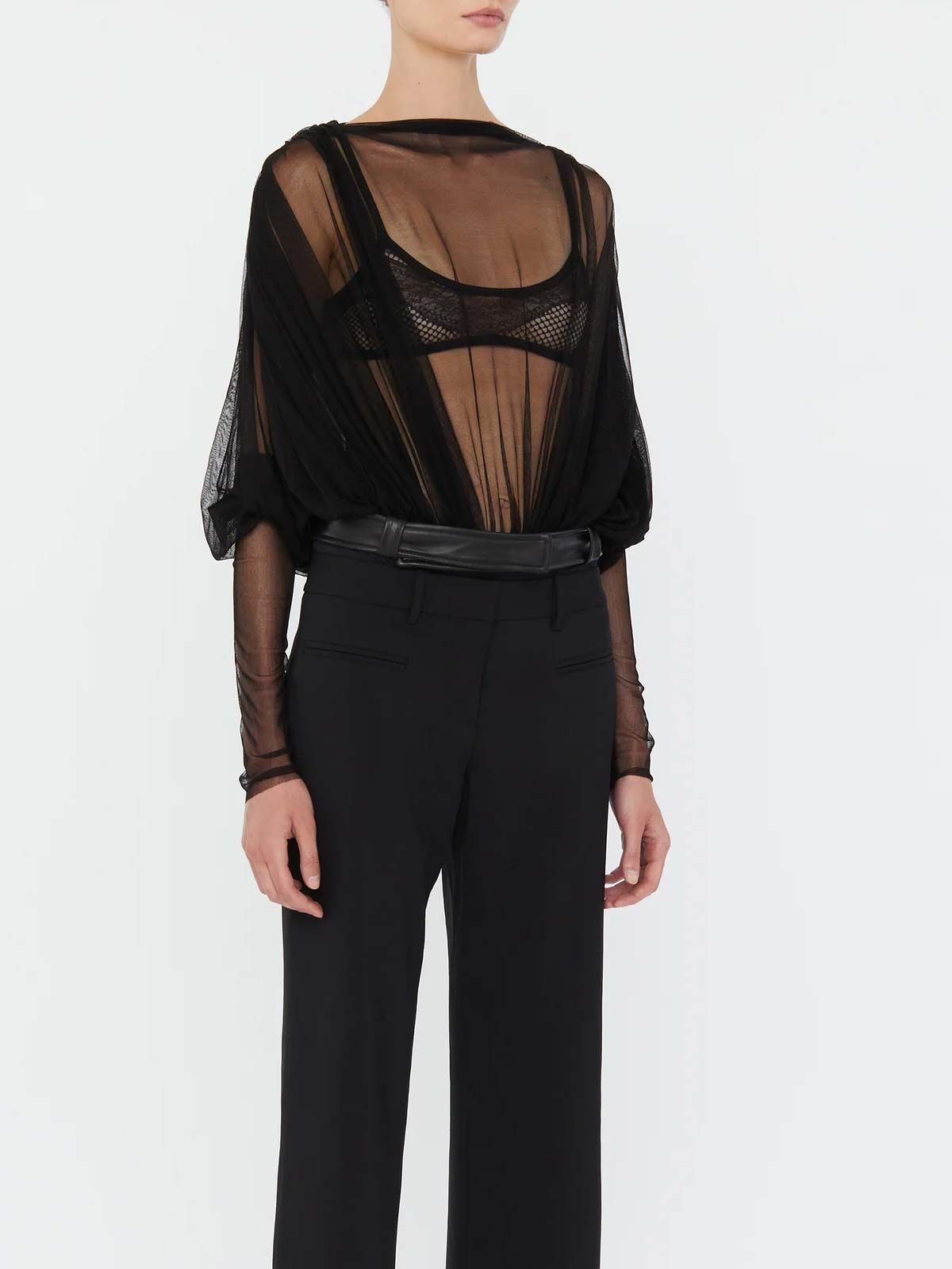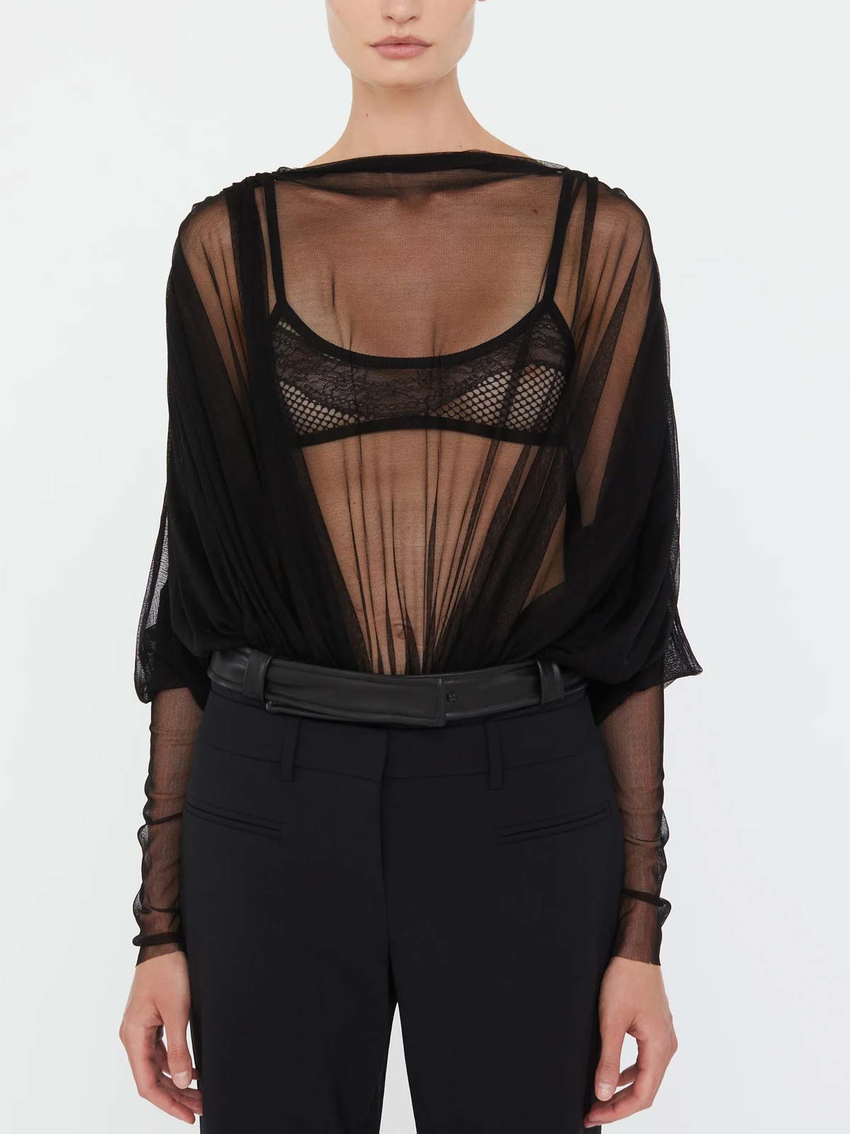 Dai una svolta al tuo stile con il nostro body in tulle nero di Christopher Esber, che reinventa la classica silhouette velata con un'attitudine decisa. Abbiamo spinto oltre i limiti, creando una scollatura a barca audace che incornicia il corpetto, e dettagli drappeggiati sulle maniche lunghe che aggiungono un tocco di grinta inaspettata. Questo capo non si limita a seguire le forme, le scolpisce: stretto sui fianchi, è sigillato da una cintura in pelle a contrasto che ne esalta il carattere forte e contemporaneo.