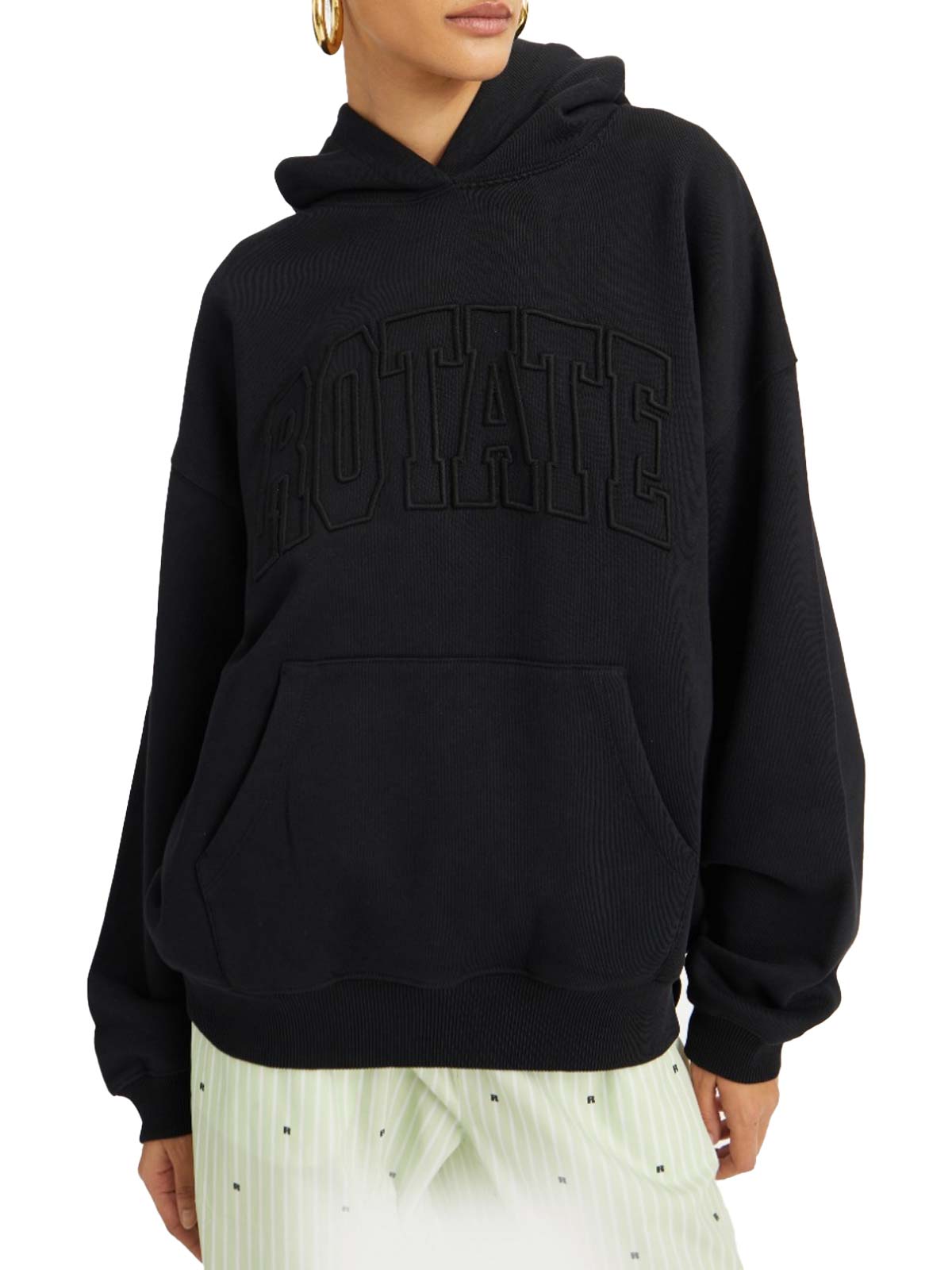 Abbraccia il lusso disinvolto con la felpa con cappuccio Rotate nera Washed Heavy Sweat. Questo capo oversize è progettato per il massimo comfort, caratterizzato da un'ampia tasca a marsupio, polsini e orlo a costine e un cappuccio regolabile con coulisse. Il suo look distintivo è completato da un grande logo ROTATE tono su tono sottilmente ricamato sul petto, il tutto esaltato da un fresco effetto slavato "usato".