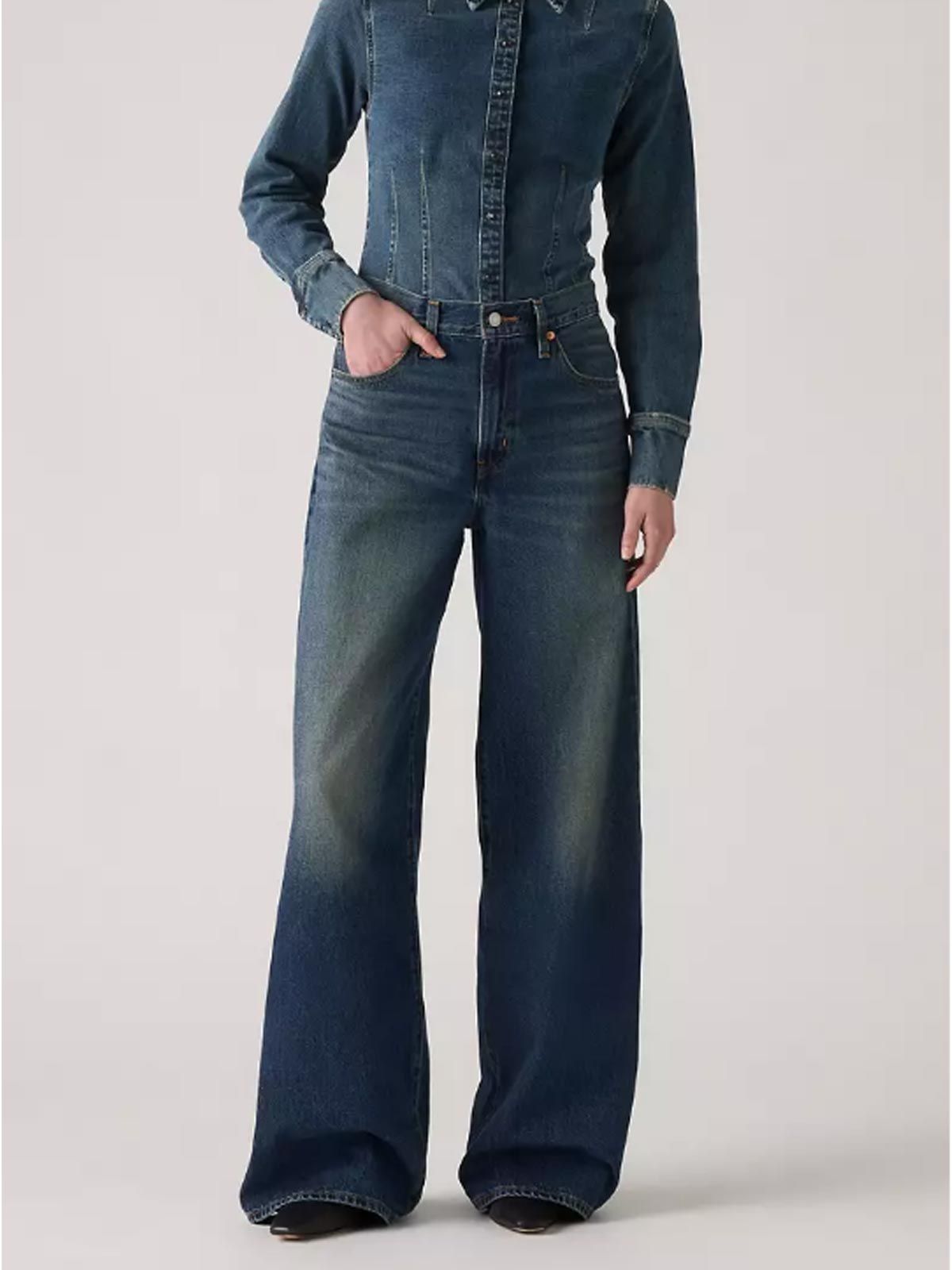 Abbraccia l'audacia di un volume esagerato con i nostri jeans Levi's XL dritti blu, il capo che ridefinisce il concetto di oversize. Progettati con un taglio ampio e una gamba diritta extralarge, questi jeans in classico denim non elasticizzato offrono una vestibilità comoda e rilassata. La vera chiave di volta è la fascia in vita regolabile con laccetto, che ti permette di personalizzare la silhouette, arrotolandoli per un look a vita alta o media.