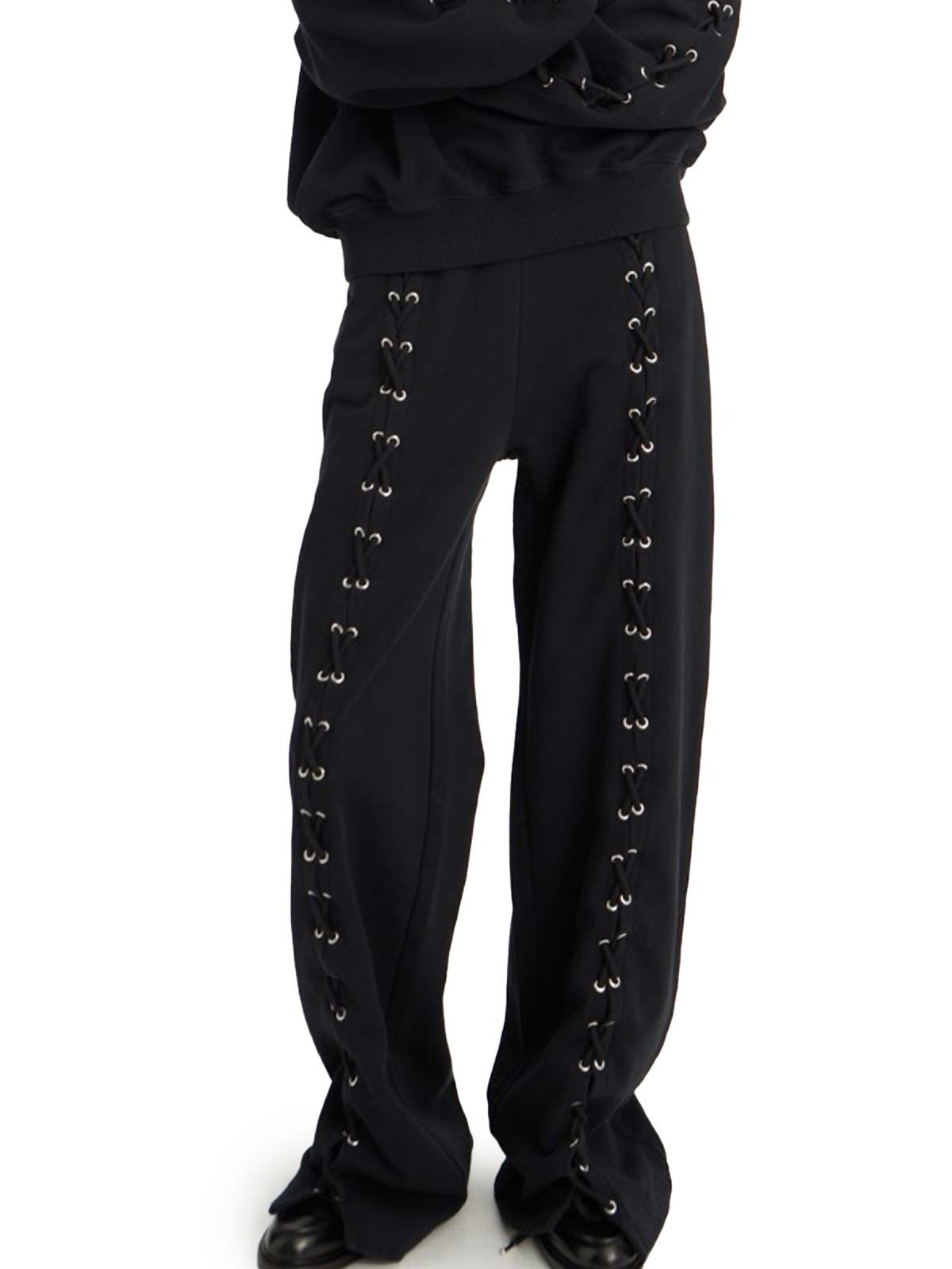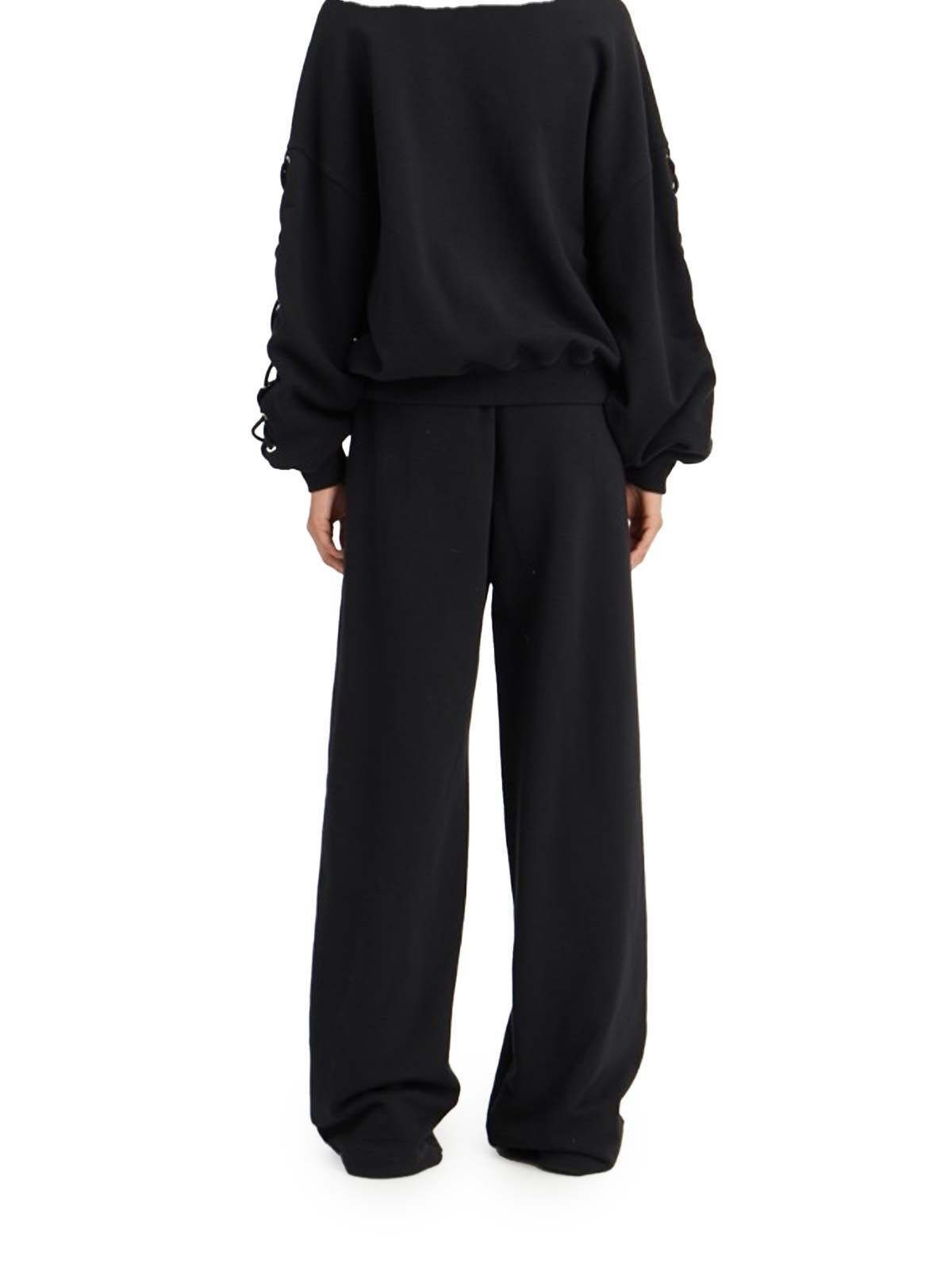 Sperimenta il massimo del comfort unito a un design distintivo grazie ai pantaloni della tuta neri con lacci di Rotate. La loro vestibilità a vita alta è impreziosita da un sistema di allacciatura unico che scende lungo le gambe. Con la pratica vita elasticizzata e gli orli risvoltati, questi pantaloni in morbido jersey donano una silhouette decisa e contemporanea.