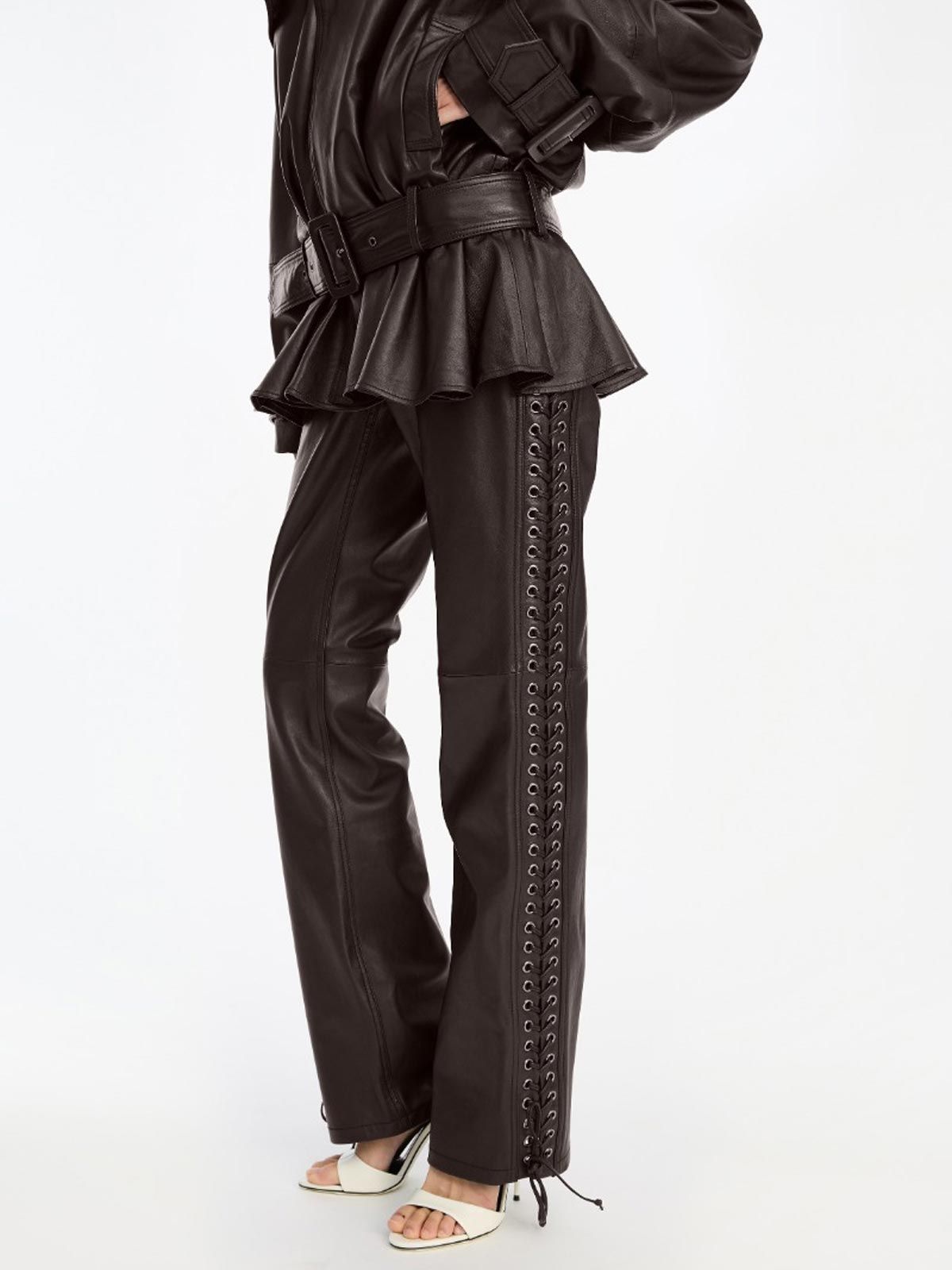 laced leather pants marrone ROTATE