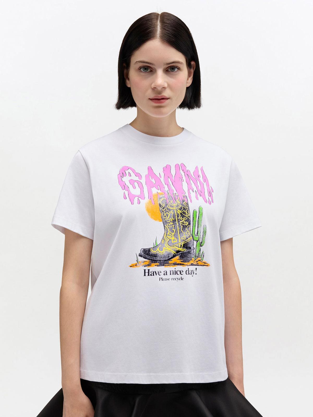 Basic Cotton Jersey T-shirt Boots Print GANNI