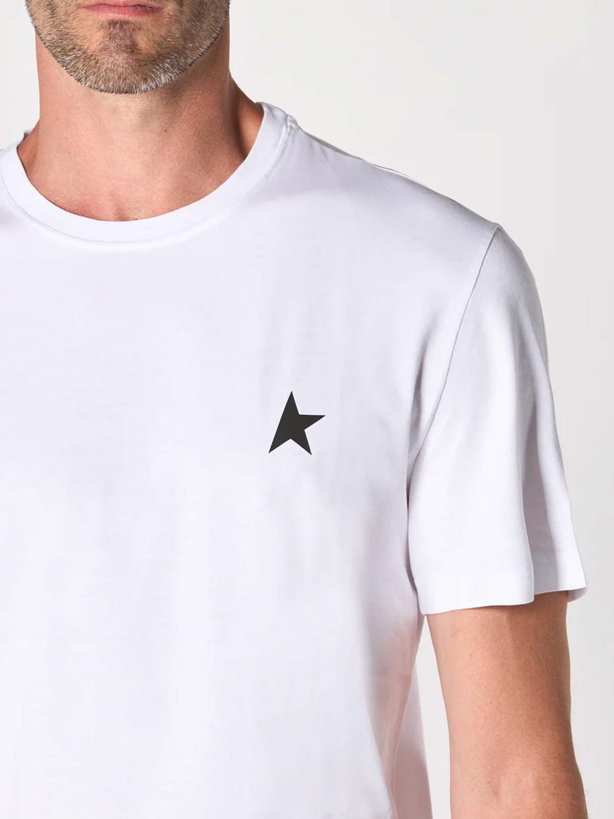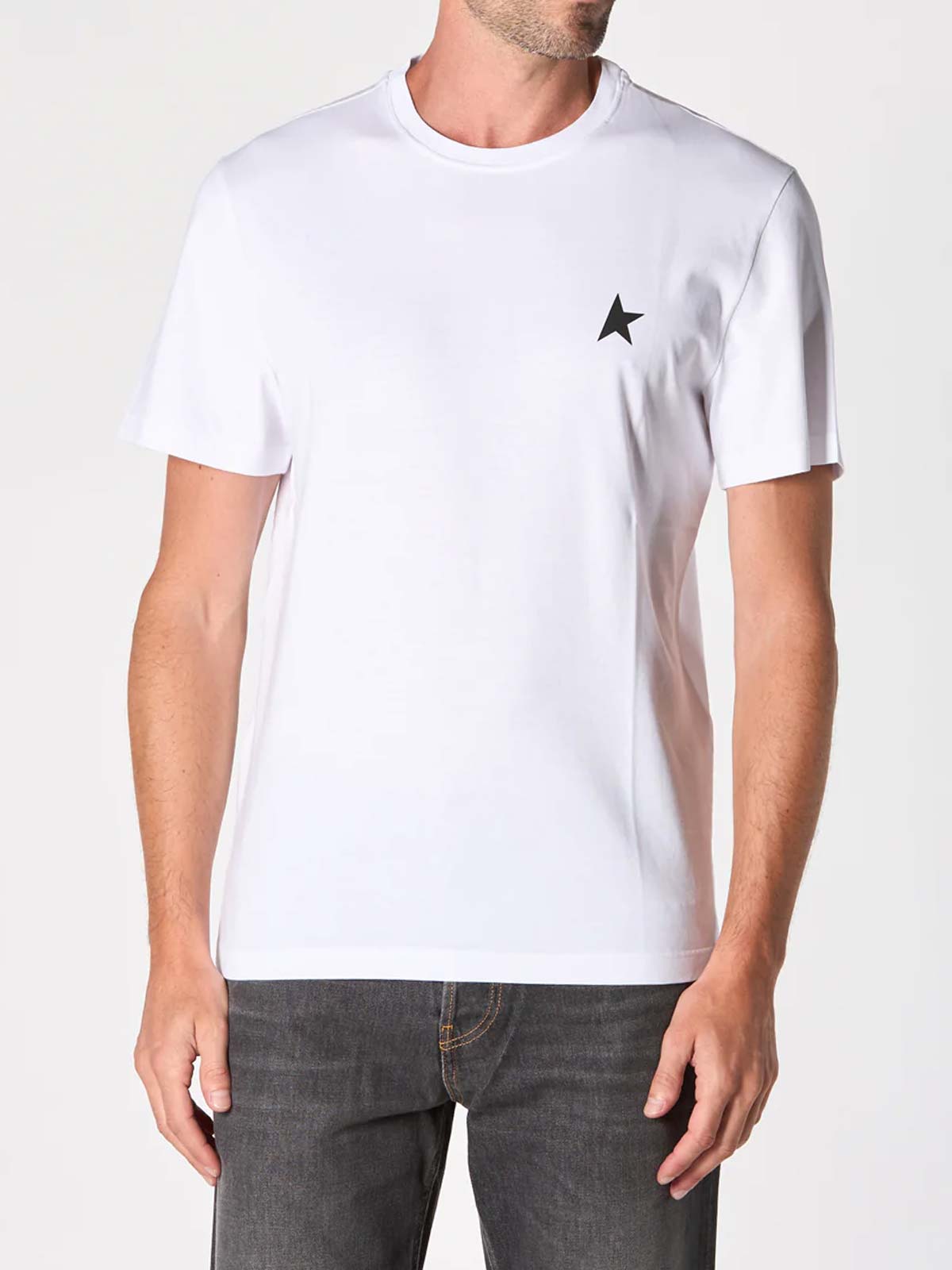 Realizzata in puro cotone con un taglio regular fit e il classico girocollo, questa T-shirt è un vero e proprio capo passepartout. Il design essenziale è impreziosito da un dettaglio iconico e discreto: la stella nera cucita sul davanti. Prodotta con l'eccellenza del Made in Italy, questa T-shirt bianca Golden Goose è la scelta perfetta per chi cerca un capo essenziale che unisca comodità, versatilità e un tocco distintivo e sofisticato, per completare ogni outfit con stile.