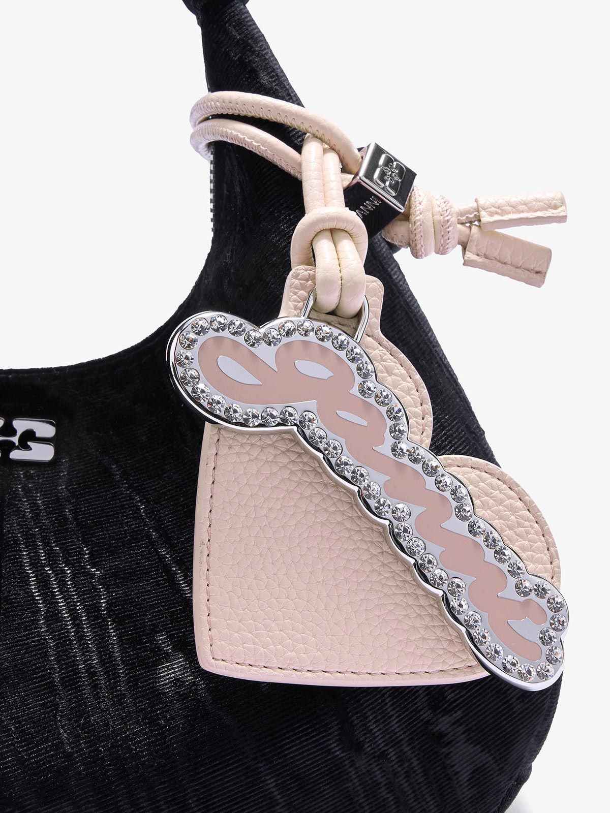 Questo specchietto portatile GANNI rosa è una fusione perfetta di praticità e design giocoso. Si presenta in una deliziosa forma a cuore, rivestita da una finitura rosa metallica che cattura la luce con eleganza. Il pezzo è immediatamente identificabile grazie ai suoi emblemi distintivi: un raffinato dado in metallo con il logo GANNI inciso e, come tocco finale, un grazioso ciondolo pendente con una farfalla e il marchio GANNI. Ideale da custodire in borsa o in tasca, questo accessorio aggiunge un tocco di romanticismo cool e l'estetica inconfondibile del brand al tuo rituale di bellezza quotidiano.