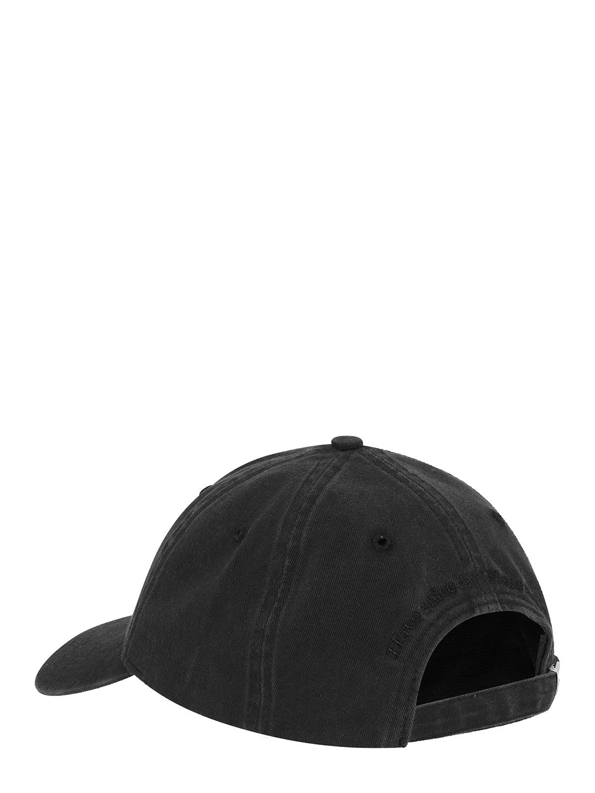 Rivoluziona il tuo outfit con l'inconfondibile cappello GANNI nero in tela, plasmato in puro cotone biologico per un'impronta sostenibile. Il design è definito da una potente e intramontabile stampa monocolore, mentre l'iconico logo è finemente ricamato. Grazie al cinturino posteriore regolabile, assicuri una calzata su misura. È più di un cappello: è la tua dichiarazione di stile irrinunciabile.