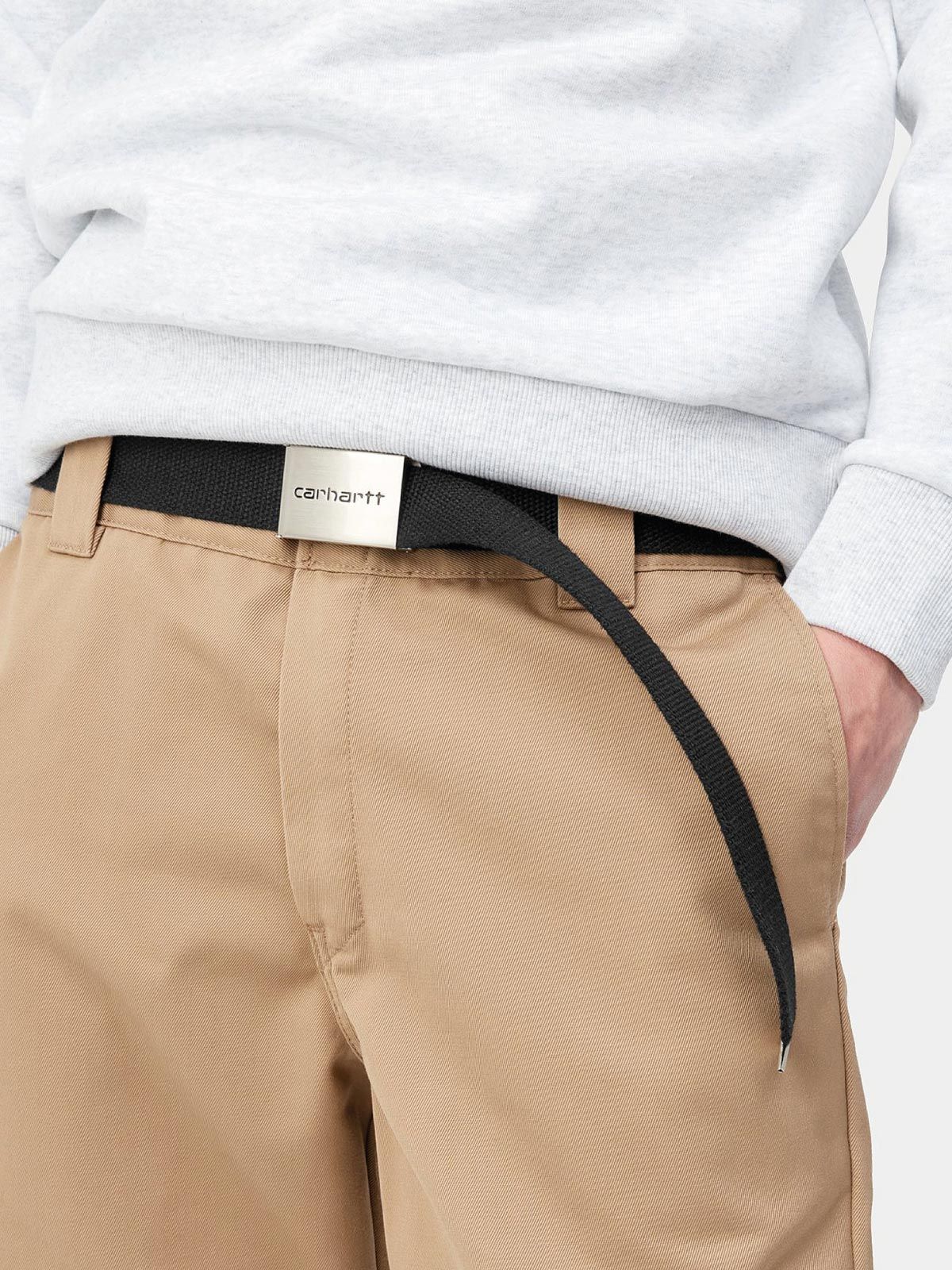 La cintura Carhartt Clip nera è una cintura robusta e versatile, realizzata in resistente canvas di poliestere pensato per durare nel tempo. Il design è completato da una fibbia a clip in metallo intercambiabile, arricchita dal logo Carhartt WIP fustellato a contrasto, che aggiunge un tocco distintivo e contemporaneo. Pratica e regolabile, questa cintura Carhartt Clip nera in taglia unica si adatta facilmente a qualsiasi look, risultando perfetta per l’uso quotidiano o per completare outfit casual con uno stile essenziale ma deciso.
