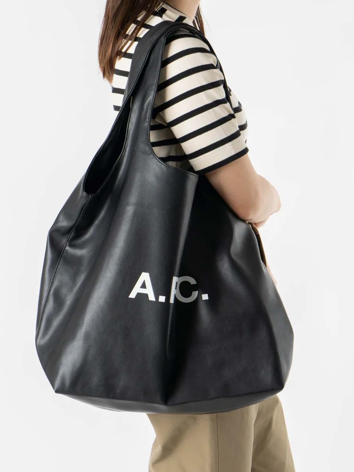 La borsa a spalla APC Ninon Tote Bag nera in effetto pelle riciclata è un accessorio unisex dal design moderno e funzionale, perfetto per chi cerca stile e sostenibilità. Realizzata con materiali riciclati (60% poliuretano, 40% poliestere), questa borsa combina un’estetica essenziale con un’anima eco-responsabile. Le dimensioni generose la rendono ideale per l’uso quotidiano, offrendo ampio spazio interno e una tasca pratica per tenere in ordine gli oggetti più piccoli.