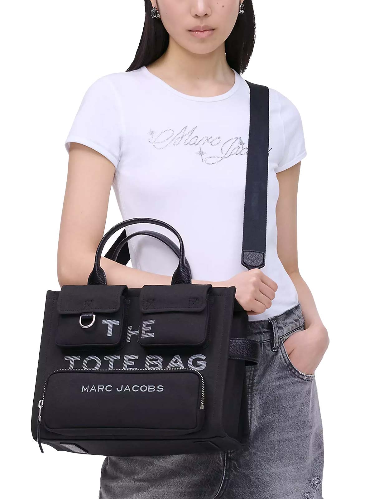 Versatile e dinamica, la borsa cargo Marc Jacobs nera può essere portata con il manico superiore o comodamente a tracolla grazie al cinturino regolabile. Il logo ricamato ne sigilla l'esclusività con un tocco distintivo.