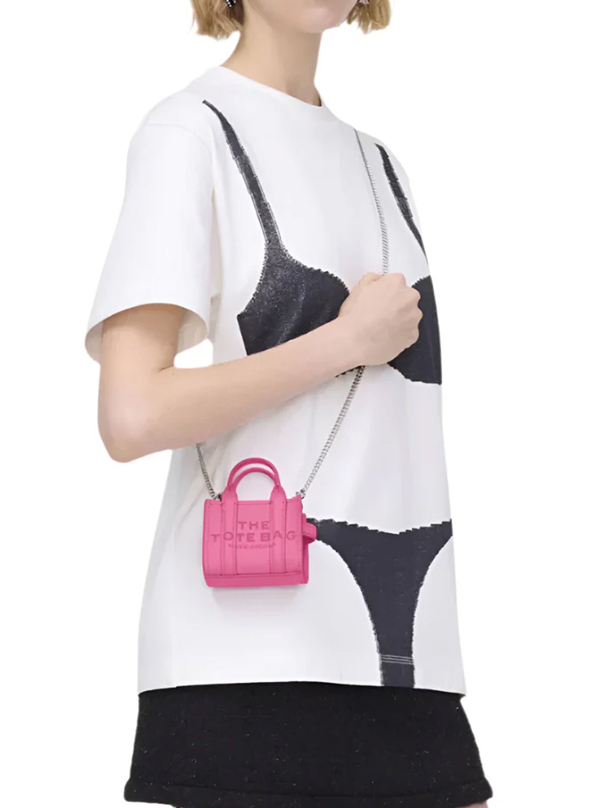 La borsa a tracolla Marc Jacobs Nano Tote rosa non è solo un accessorio, ma un vero e proprio manifesto di stile. Realizzata in finissima pelle pieno fiore, cattura l'essenza dell'estro creativo e della sapiente proporzione di Marc Jacobs, offrendo un accessorio dal fascino giocoso e sofisticato.