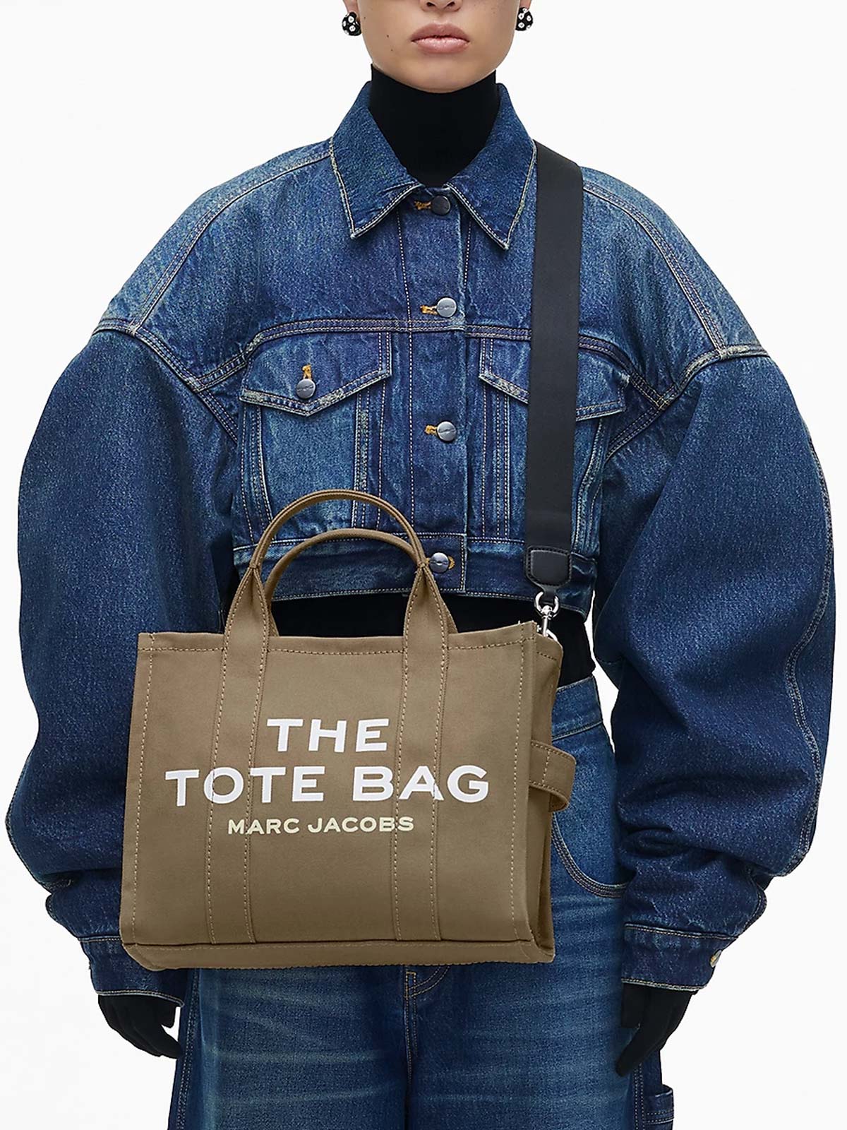 Ogni dettaglio è pensato per la praticità e il carattere: dalla solida chiusura con zip superiore che custodisce i tuoi essenziali, alla tasca a fessura e lo slot per carte per avere tutto a portata di mano. Il logo, discreto ma riconoscibile, ne firma l'appartenenza. Che tu stia sbrigando commissioni o affrontando una giornata in ufficio, la Marc Jacobs Tote Bag Canvas Media Verde è la soluzione ideale. Indossala con disinvoltura dai manici superiori o, per una libertà totale, aggancia la tracolla regolabile e rimovibile.