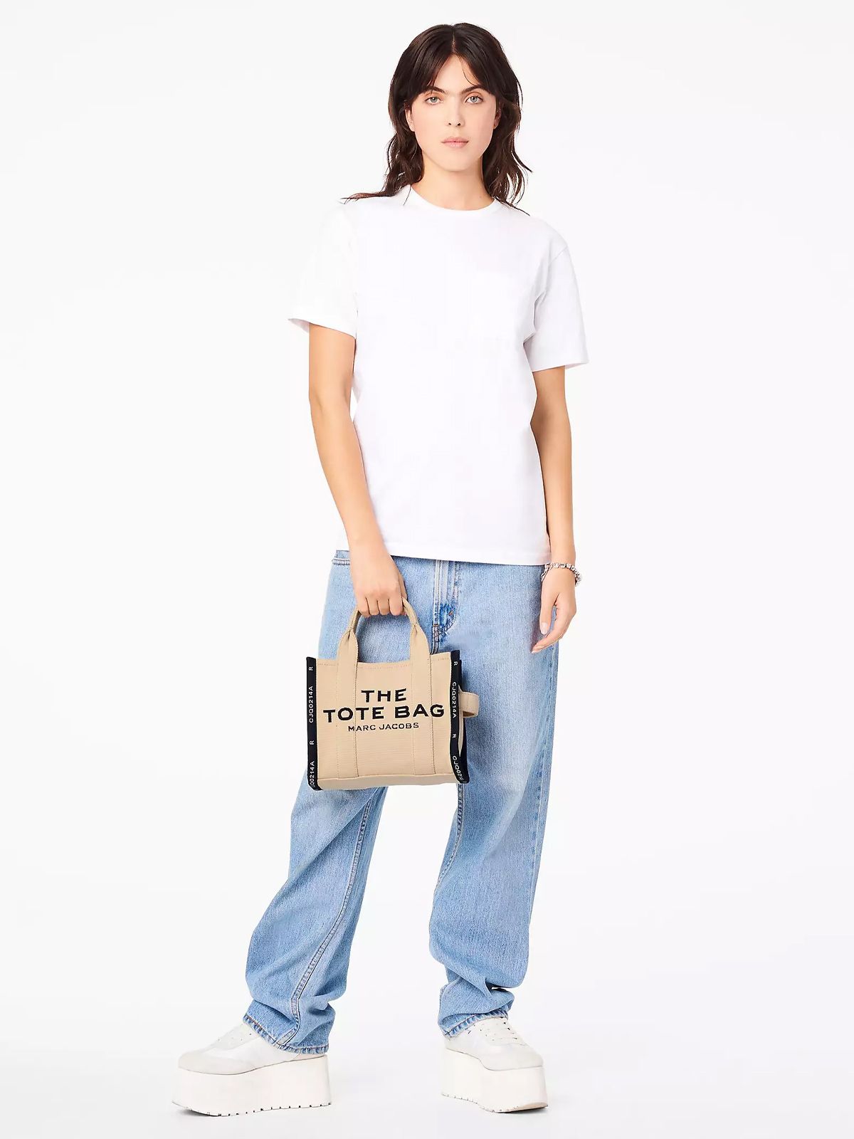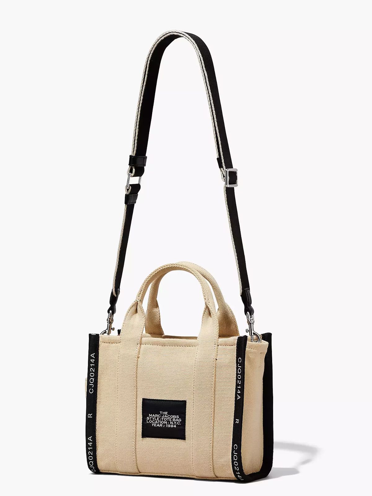 Scegli di portare la Marc Jacobs Tote Bag Small Jacquard sabbia con i manici superiori o aggancia la tracolla regolabile e rimovibile per avere le mani libere. Provala anche tu!