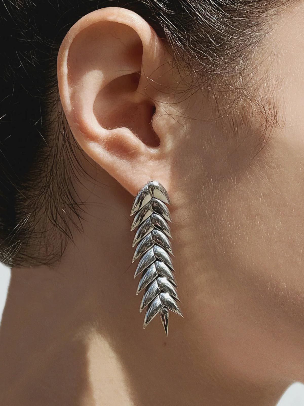 Gli orecchini Spikelet medium argento di BEVZA sono una squisita celebrazione dell'identità culturale che reinterpreta i simboli tradizionali ucraini con un tocco di lusso contemporaneo. Questi orecchini pendenti offrono una nuova prospettiva sulla spiga di grano, un antico emblema di fertilità e raccolti abbondanti, attraverso cui il marchio onora la vitalità e la generosità della natura.