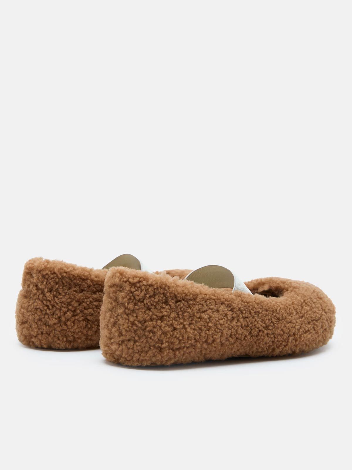 È la rivoluzione della classica ballerina: la silhouette iconica viene upgradata con il lusso avvolgente dello shearling e la morbidezza della pelle. Le ballerine Moon Boot in pelliccia cognac sono una vera bellezza ibrida, dove il comfort del soffice interno incontra l'audacia dell'esterno. I cinturini logati a contrasto non sono solo un dettaglio funzionale, ma un inconfondibile tocco iconico.